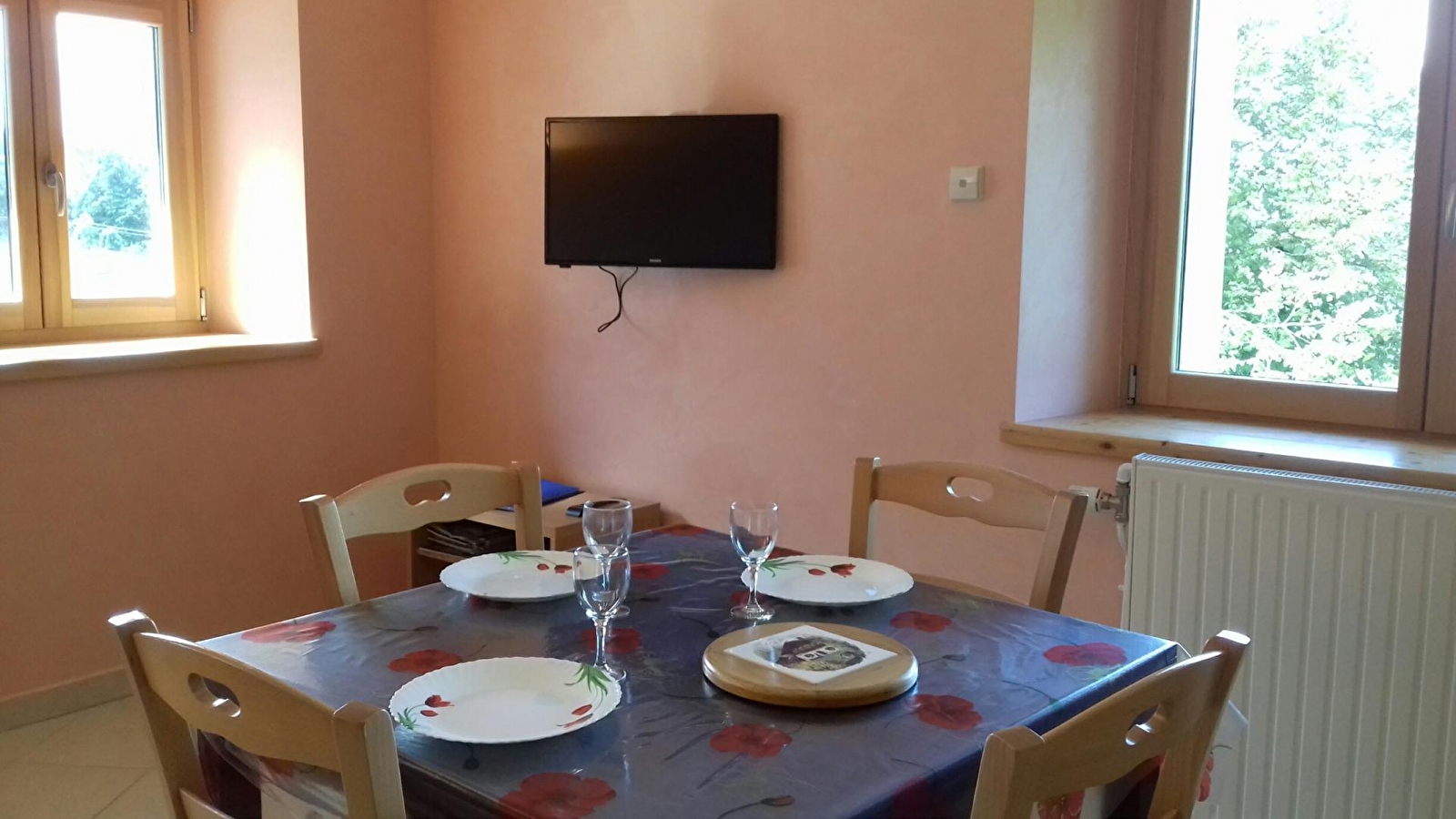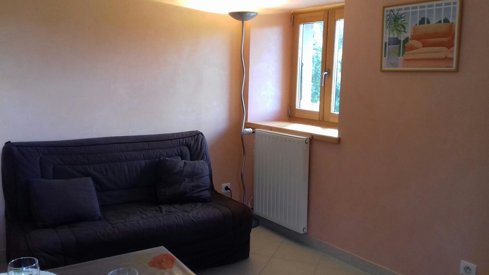 Flat located on the 1st floor of the owner's house where there is another gîte. Living room with integrated kitchenette, 2-seater sofa bed, bedroom 1: 2-seater bed, shower room, separate toilet, washing machine and tumble dryer shared by several flats. Central heating, adjoining unfenced plot, private parking, courtyard, terrace, garden furniture, barbecue. Close to cross-country ski trails and all shops. All utilities included. This gîte has a beautiful view of the surrounding countryside. Garage on request: €30/week.