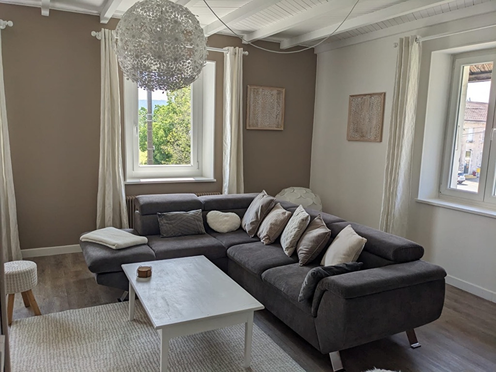 Located in the village of Saint Pierre in the PNR du Haut Jura, large and bright flat of 120m2, classified three stars, located on the first floor of a detached country house, can accommodate 6 people. Very nice view over the countryside.