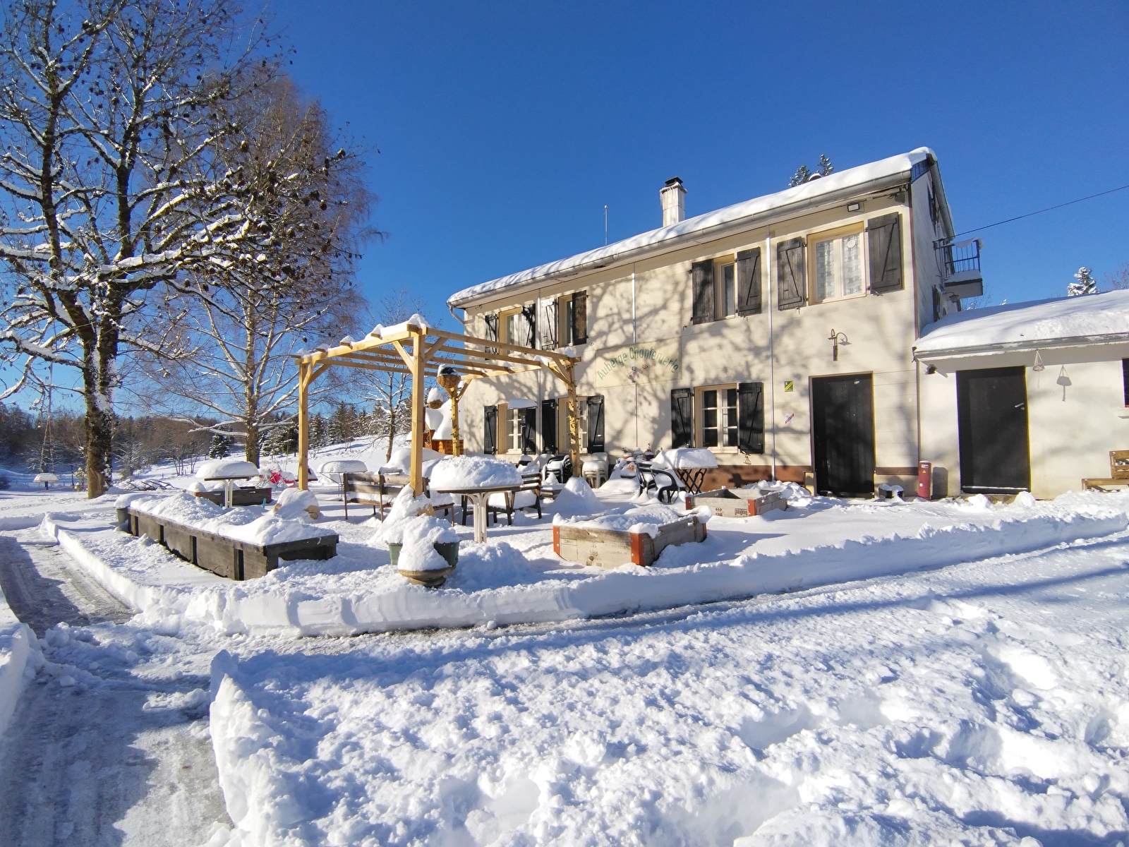 Tucked away in the heart of the Haut-Jura, the Auberge Chantemerle is much more than just a place to stay: it's a lively, welcoming and rejuvenating stopover. Here, you can breathe in the pure mountain air, wake up to the peace and quiet of the forests, and enjoy an exceptional setting between sparkling lakes and nearby ski slopes.