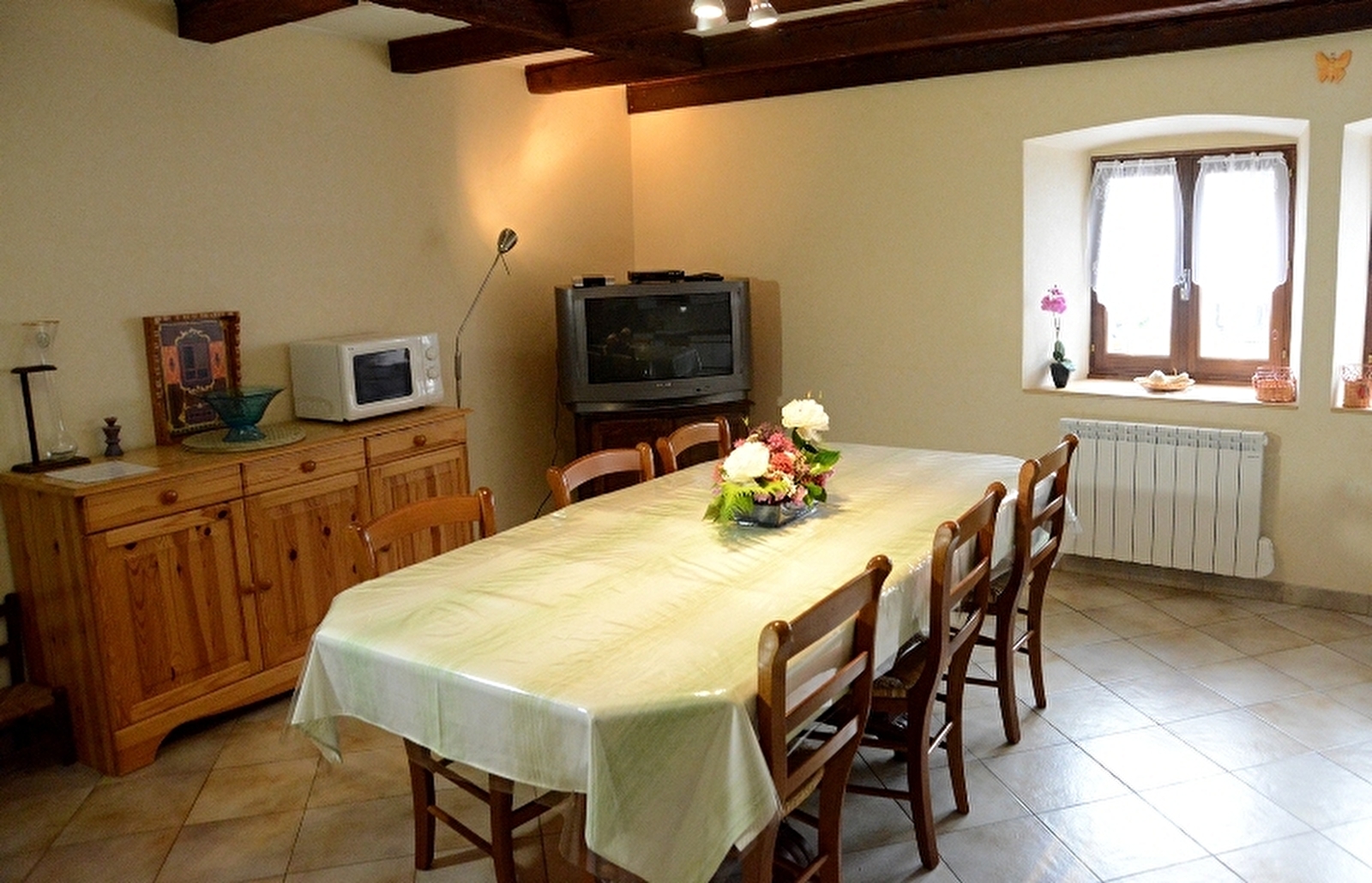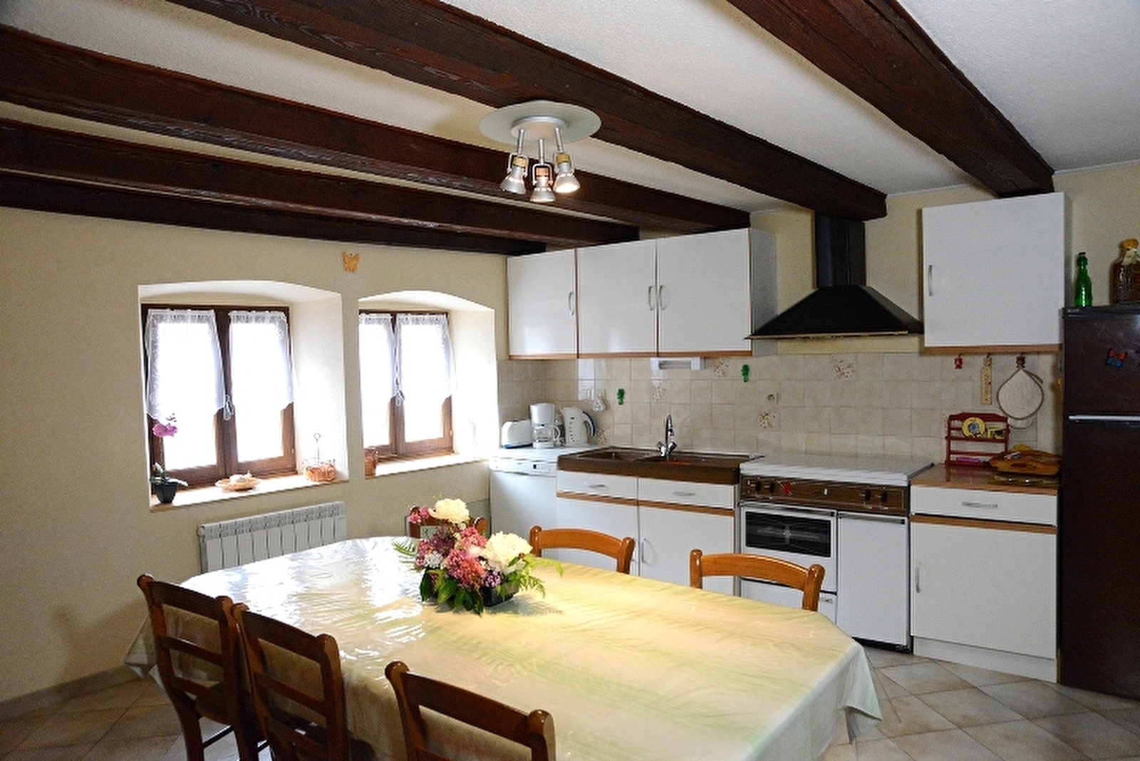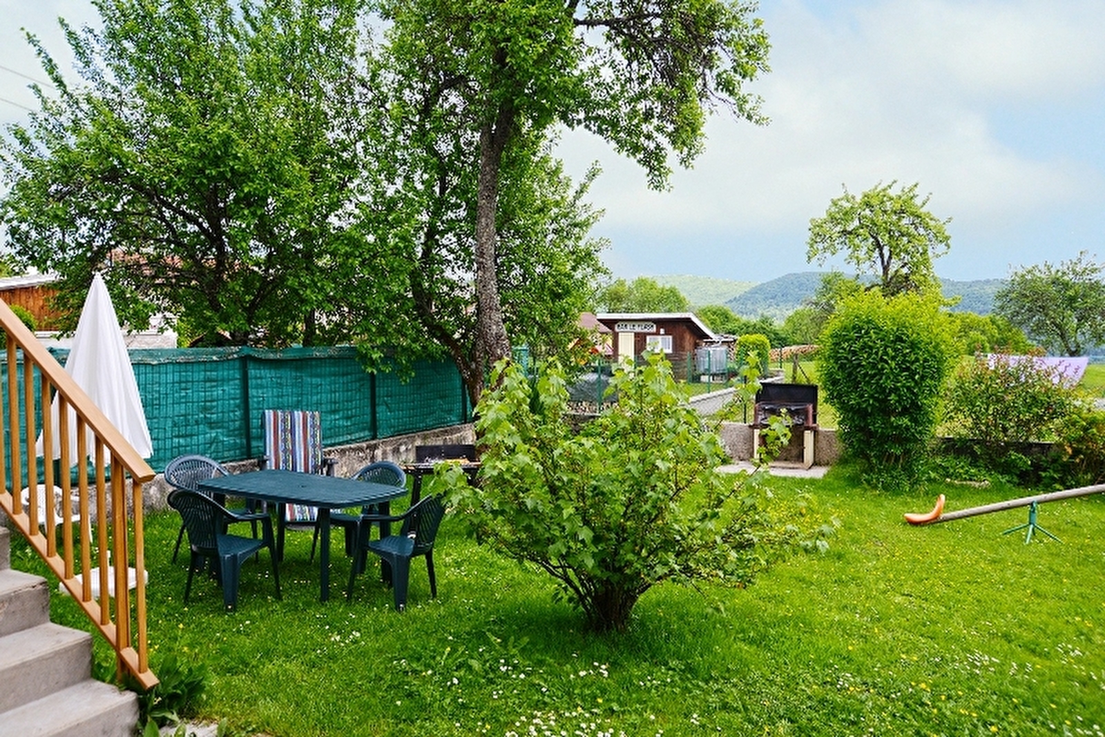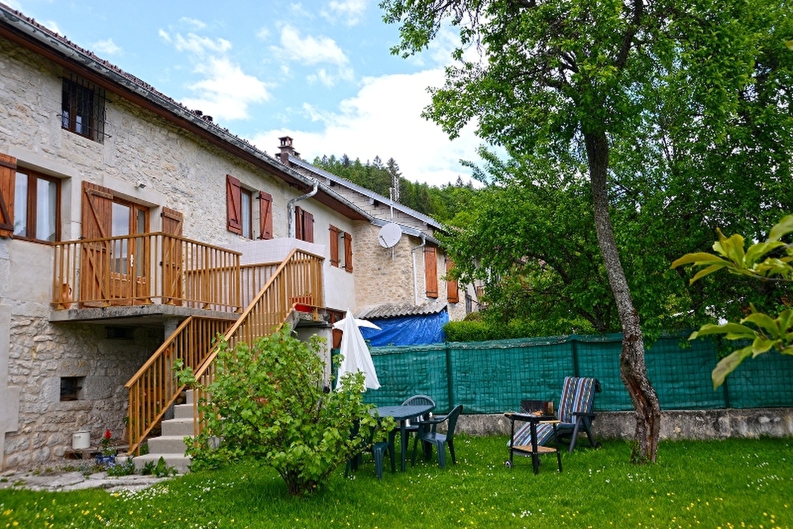 Located next to the lake Vouglans, terraced house with on the first floor the entrance. On the second floor : separate and equipped kitchen, living room with TV and fireplace, balcony with a magnificent view over the highest moutains of Jura. On the third floor : three bedrooms and one bathroom. Garden.