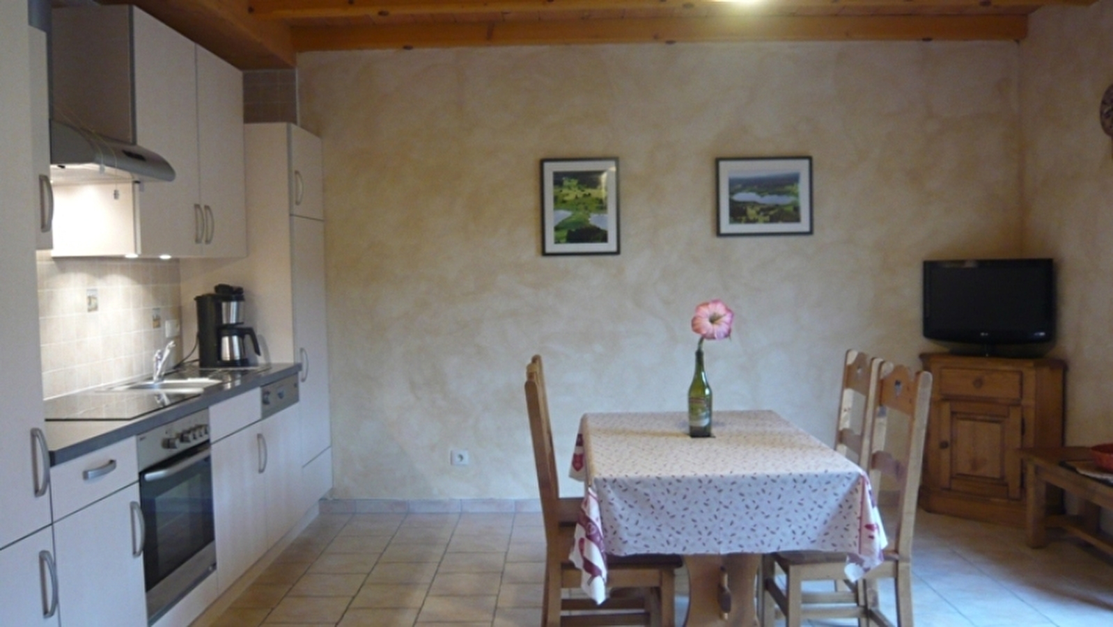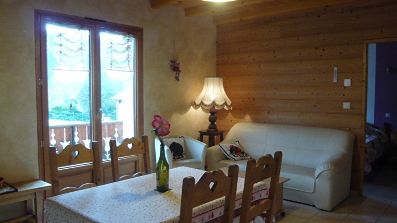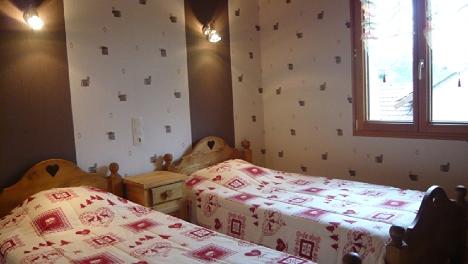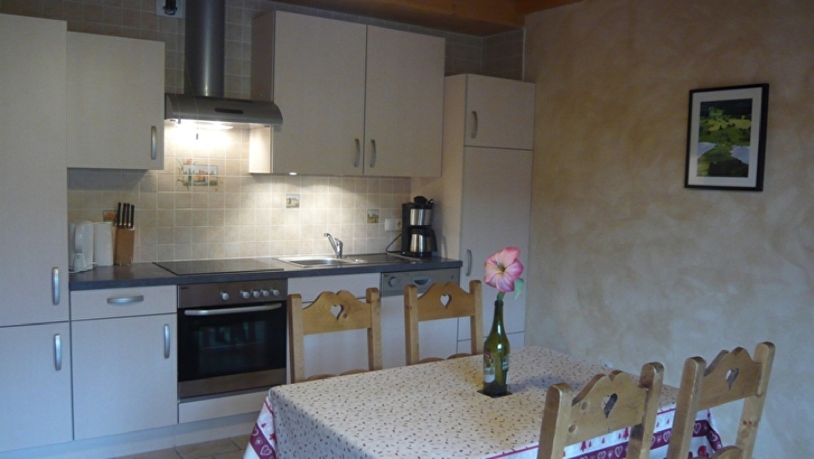 In the heart of the village, fully renovated former farmhouse with several gîtes. Ground floor: ski/bike room. First floor: lovely fitted kitchen opening onto living room, CH1: 1 double bed, CH2: 2 single beds, bathroom with shower (hairdryer), separate WC. Balcony with lovely views of the slopes. Adjoining unfenced garden with garden furniture and barbecue. Intercom and digicode. FREE SECURE WIFI ACCESS. Rates available for 2 people: please ask the owners.