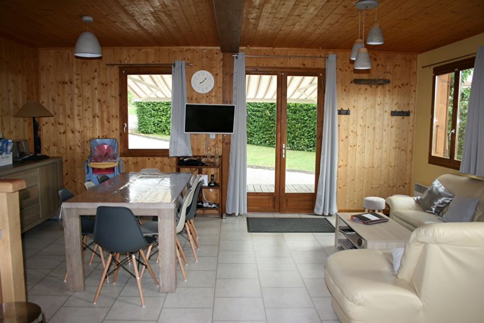 Welcome to the 7 Aventuriers chalet! Set in 1000 m² of fully enclosed grounds, the ground floor comprises a bright living room with fully-equipped fitted kitchen, a sitting room (with TV) with direct access to a covered terrace, a bedroom with 1 double bed (140x190), a shower room with WC and a utility room with washing machine and tumble dryer. Upstairs, 2 bedrooms: one with 2 pull-out beds (sleeps 4) and the other with a double bed (140x190), a bathroom with bath and separate WC. Outside: garden furniture with barbecue and deckchairs. Little extras: table tennis and table football Note: this gîte is recommended for 6 adults and 2 children (one bedroom sleeps 4 in a trundle bed). Electricity consumption costs according to consumption: the meters will be read on arrival and at the end of the stay (approx. €10 to €15/week without electric heating or €40 to €60/week with controlled use of electric heating in winter). Nearby: Cascades du Hérisson, Lacs de Chalain, Vouglans, Clairvaux les lacs toy museum in Moirans en Montagne, Musée de la Vache qui rit in Lons le Saunier. Outdoor activities: hiking, cycling, fishing, swimming, sports and water activities such as tree climbing and kayaking: Saut de la Saisse and marmites de Géant in the village, Belvédère des 4 lacs de la petite écosse, Pic de l'aigle, Reculée et cascade de La Frasnée, Belvédère de la dame blanche à Bonlieu, Reculée des planches à Baume les Messieurs Terroir : Fruitières à comté, Jura wines and charcuterie... 40 discount for bookings of 15 days or more. Note: the deposit is compulsory. If you do not have a chequebook, please bring cash or make a bank transfer a few days before your arrival, and it will be returned to you 15 days after the end of your stay. There is a cleaning charge of 110 euros for pets.