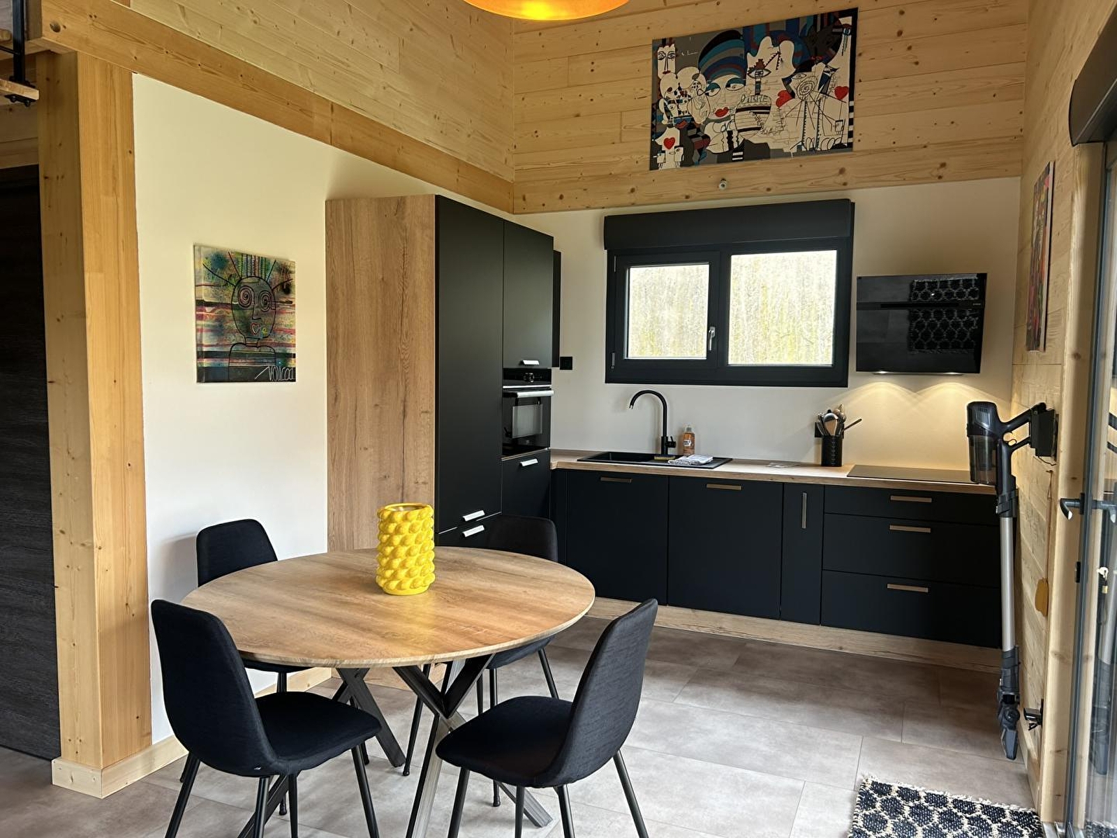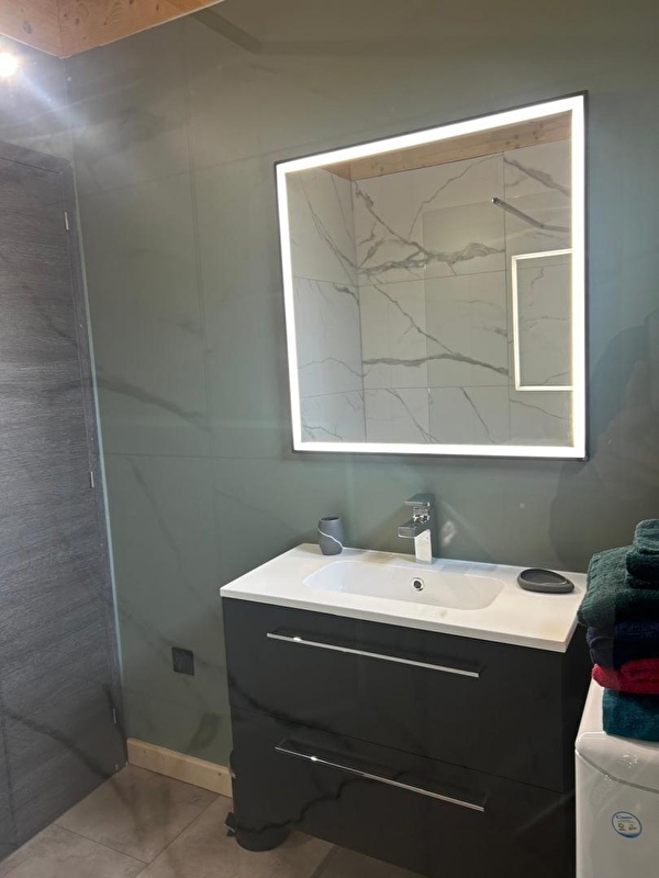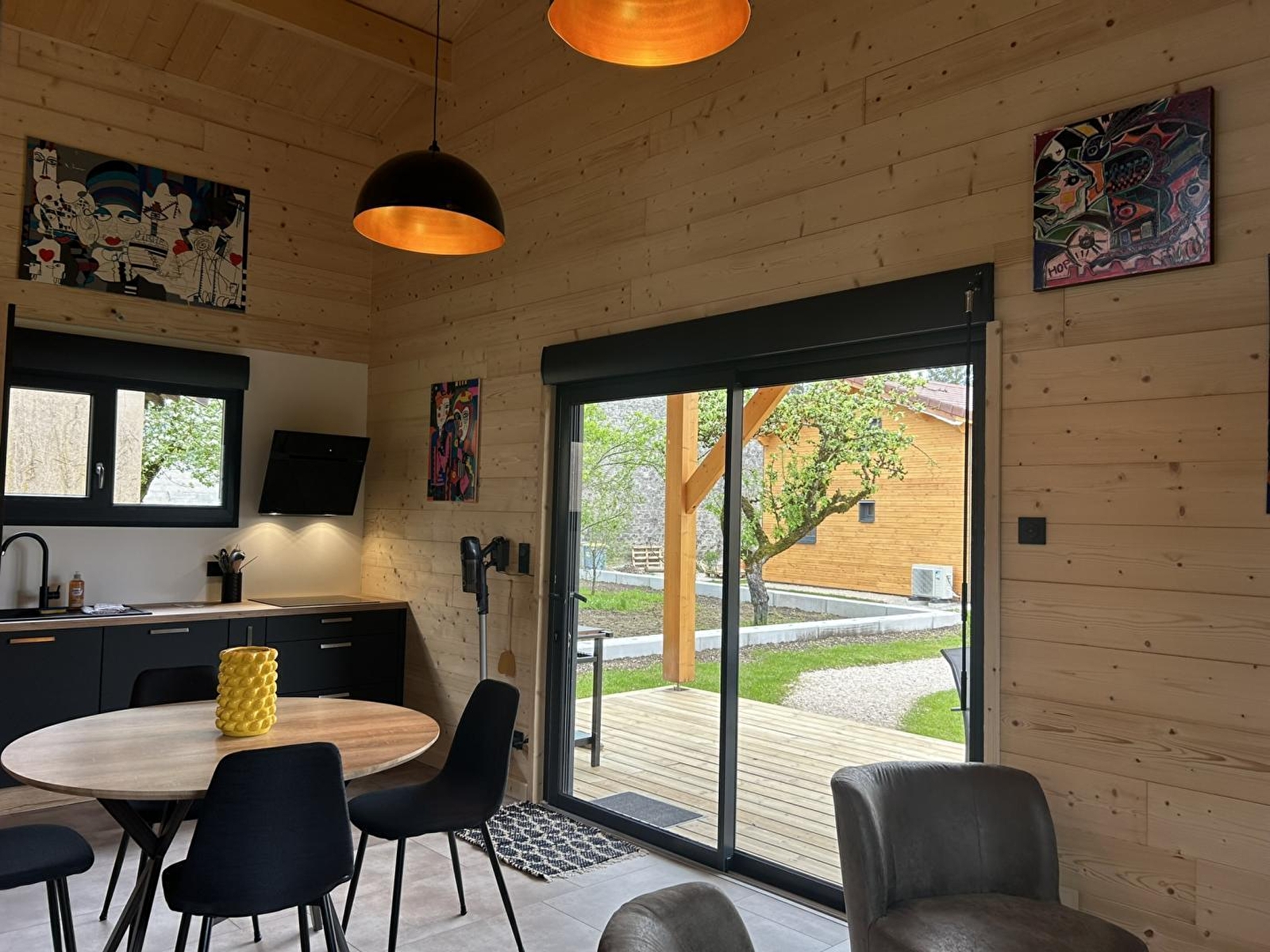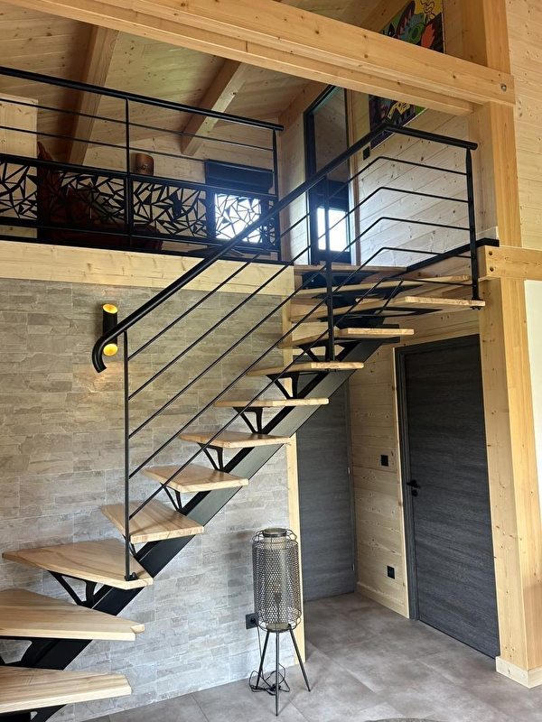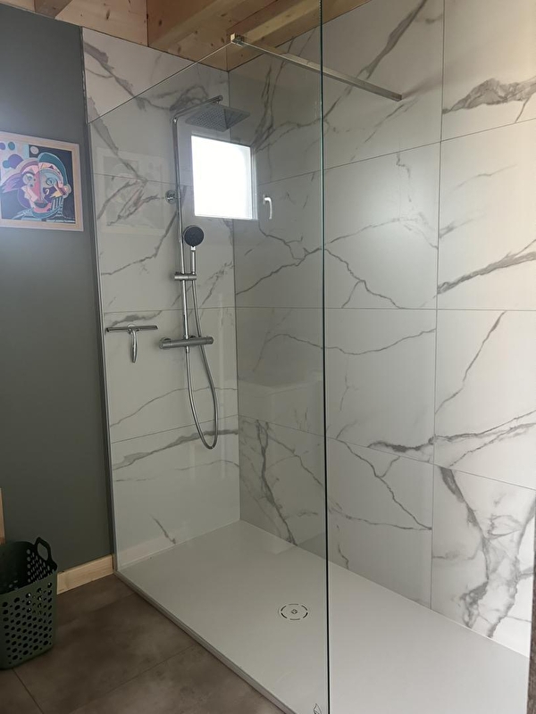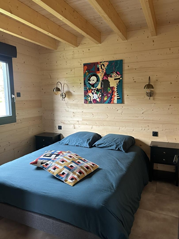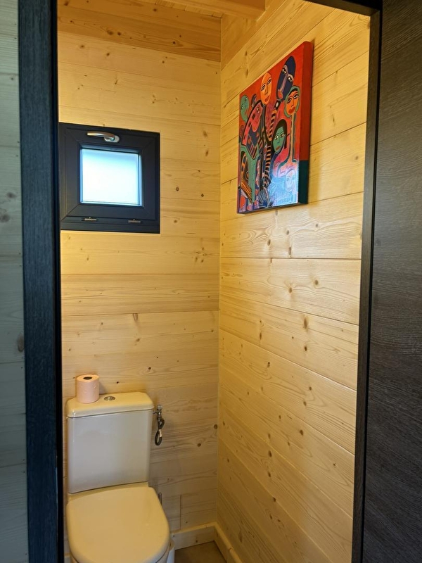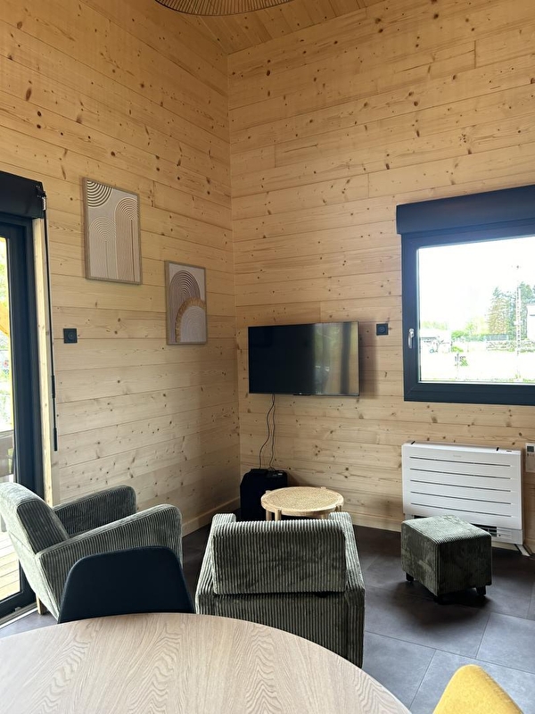 This cosy little chalet, set in a plot with 2 other identical chalets, will be sure to tempt you for your next holiday in the Jura. It comprises a living room with a fully-equipped kitchen, a sitting area with TV, a bedroom with 1 double bed (160*200), a shower room with shower, a separate WC, a mezzanine with a sofa bed and an attic bedroom with 2 twin single beds (80*200). Outside, you can enjoy an 18 m² covered terrace equipped with garden furniture and a plancha. Ideally located 2 km from Lake Chalain, with direct access to the Champagnole - Marigny-Doucier cycle path. A cleaning charge of 80 euros will be applied automatically at the time of booking.