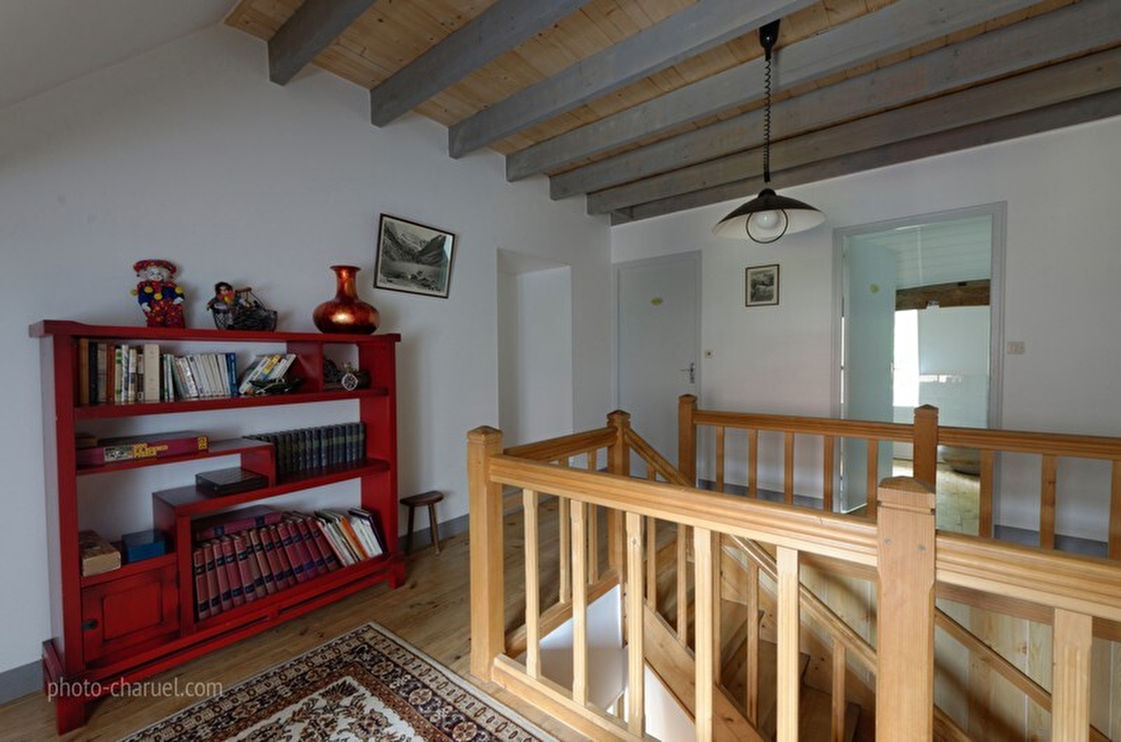 Entrance hall, equipped kitchen, dining room, living room with TV, CH1: 1 bed 160X200 cm, shower room, separate WC. On the first floor: mezzanine reading area, 4 bedrooms each with 1 double bed and 1 bedroom with 3 single beds, shower room, separate WC. Terrace with garden furniture, barbecue. Adjoining unfenced land of 30 hectares. wifi. Baby equipment on request.