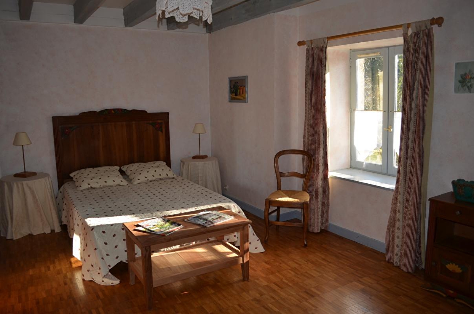 The gîte is located in part of a renovated old farmhouse. It has a rustic feel, recreating the atmosphere of Marcel Aymé's "Contes du Chat Perché". Fully-equipped fitted kitchen (freezer), living room, bedroom 1: 1 double bed, bedroom 2: 1 double bed and 1 single bed, 2 cots, shower room, semi-enclosed adjoining garden, courtyard, barbecue, garden furniture. You can stroll around the owners' magnificent garden, which they will be delighted to show you. Central heating. All utilities included summer/winter. On request, optional cleaning package: €70 and sheet hire: €10/pair. Free internet connection.
