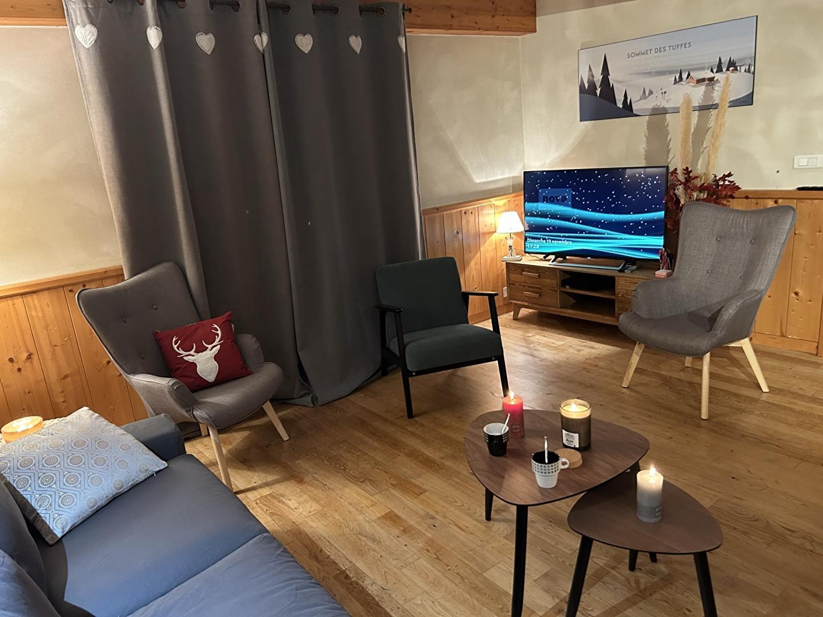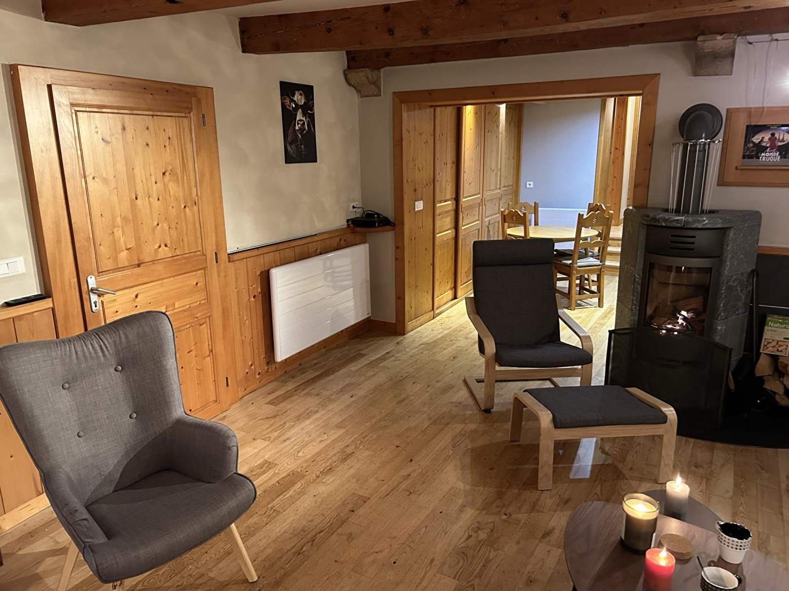 "Chez la Marie-Louise" A cosy break by the fire in the heart of the Haut-Jura Regional Nature Park. This fully refurbished triplex gîte has all the comforts you need for an unforgettable stay. The ground floor comprises a large living room with wood-burning stove, flat-screen TV, fully-equipped kitchen (filter coffee maker + Senséo), dining room with TV, bathroom with bath and separate WC. There is also a large ski room with washing machine. On the 1st floor: a bedroom with a 160 x 200 bed, a second bedroom with a 160 x 200 bed and a 90 x 200 bed, a bathroom with shower, double washbasins and WC. Finally, on the top floor, a large mezzanine with a 160 x 200 bed and a 90 x 200 bed. Direct access from the ground floor to the garden (in summer). A covered garage is included in the price + private outside parking spaces which are cleared of snow in winter. Wood heating: A basket with ten logs is included in the price, then €8 per additional basket.