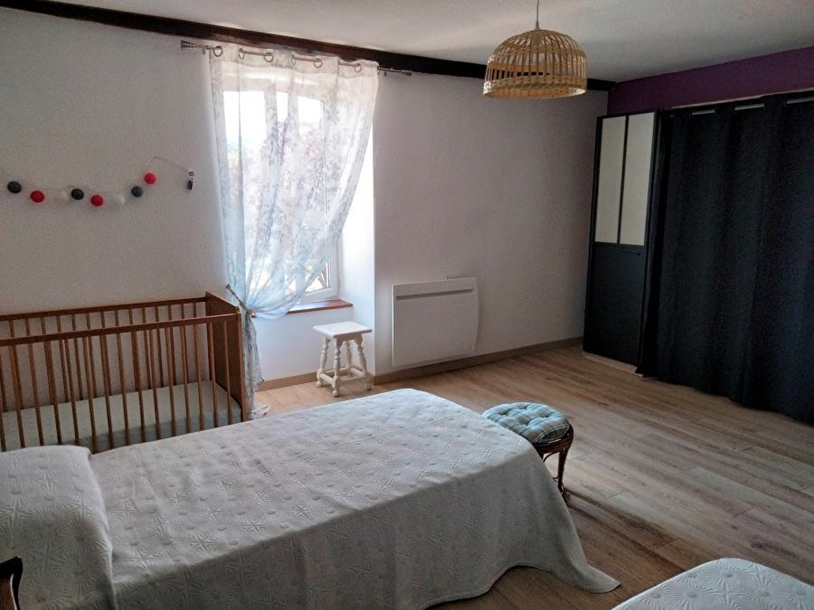 - a double room with a 140cm bed, overlooking a garden