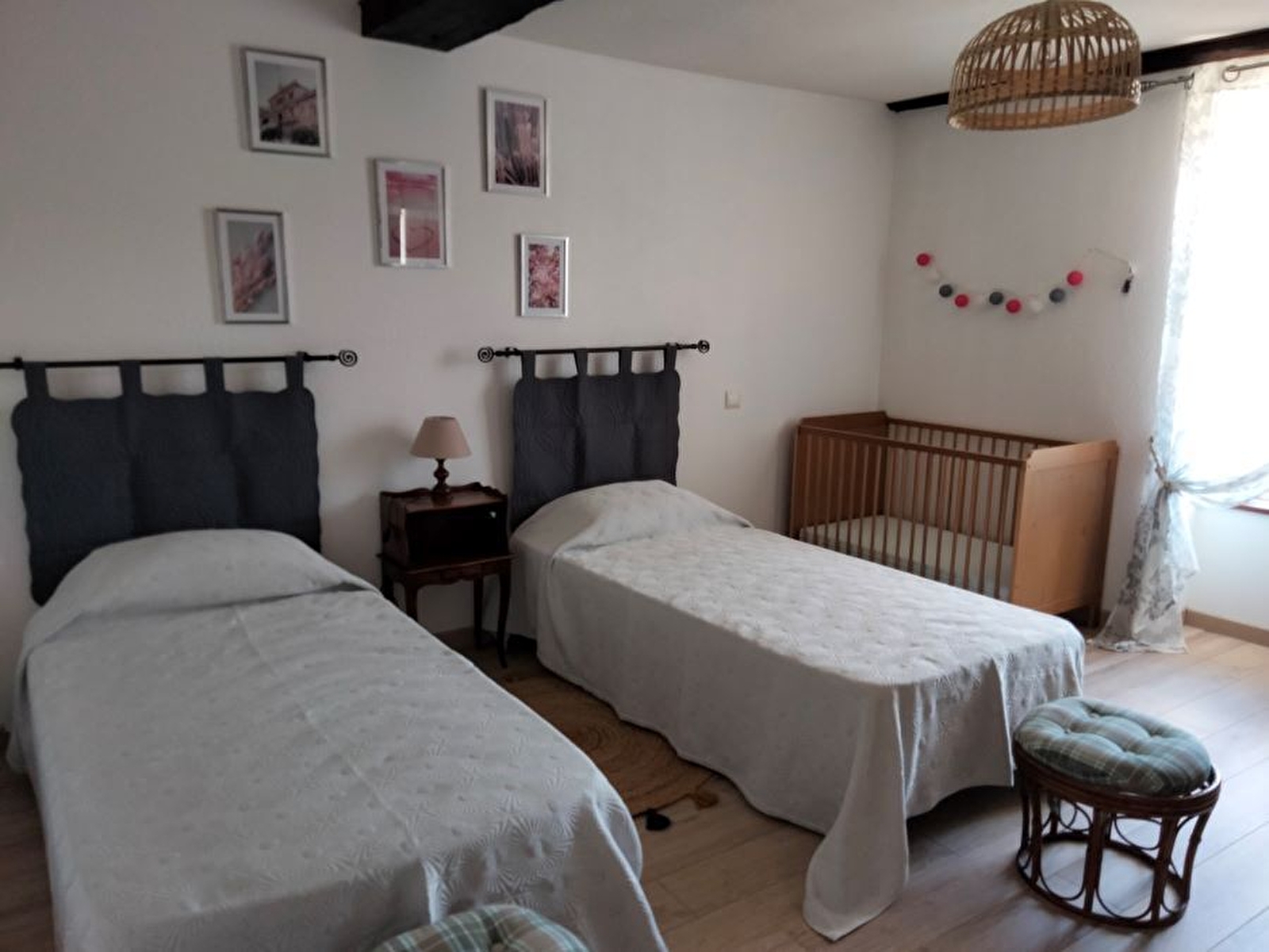 - a twin room (with 2 single beds), with a beautiful view of the belvedere of Fays (Gigny-sur-Suran)