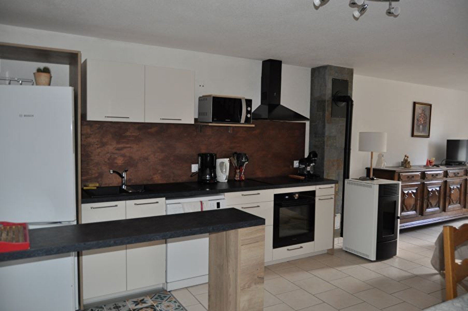 > On the ground floor: a large living room with a fully equipped kitchen opening onto this beautiful living room. The lounge area includes a TV and an independent toilet is located on the ground floor.