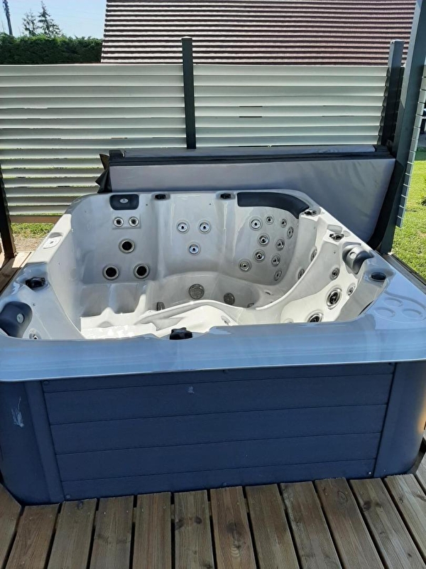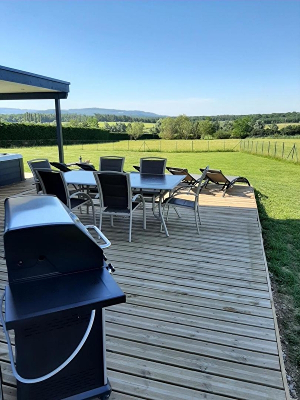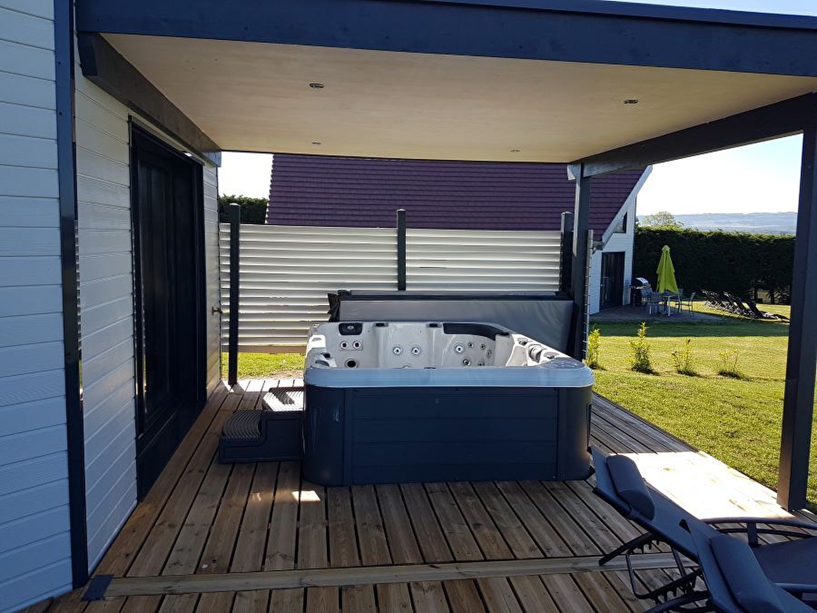 In a pretty little village in the Jura vineyards, just a few kilometres from Poligny, the capital of Comté, come and stay in this new single-storey house and enjoy the peaceful surroundings. Spacious living area with sofa, flat-screen TV, Bluetooth hi-fi system, pellet stove and fully-equipped fitted kitchen. 1 bedroom with 160x200 bed and 2 other bedrooms with 2 90x200 beds (which can be joined or separated), 1 shower room with large shower and 1 separate WC. Terrace with private SPA open all year round, garden furniture and barbecue, offering a magnificent view of the owners' deer park. Vast adjoining enclosed grounds. For your comfort, towels are provided and beds are made on arrival. Fishing enthusiasts will have access to the owners' private pond (fishing tackle available on request). A must-see address, so don't wait any longer to book! Gîte bonus: reversible air conditioning. 90 € deposit if guests do not take the cleaning package.
