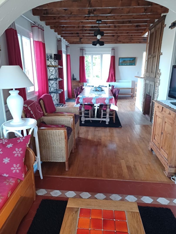 Detached house with views over Lake Chalain from a large terrace. FREE access to the beach on foot. Situated in a cul-de-sac, in a quiet and relaxing environment. Enclosed garden with trees, garden furniture, barbecue, swing. Hiking from the house (tour of the lake 9 km )