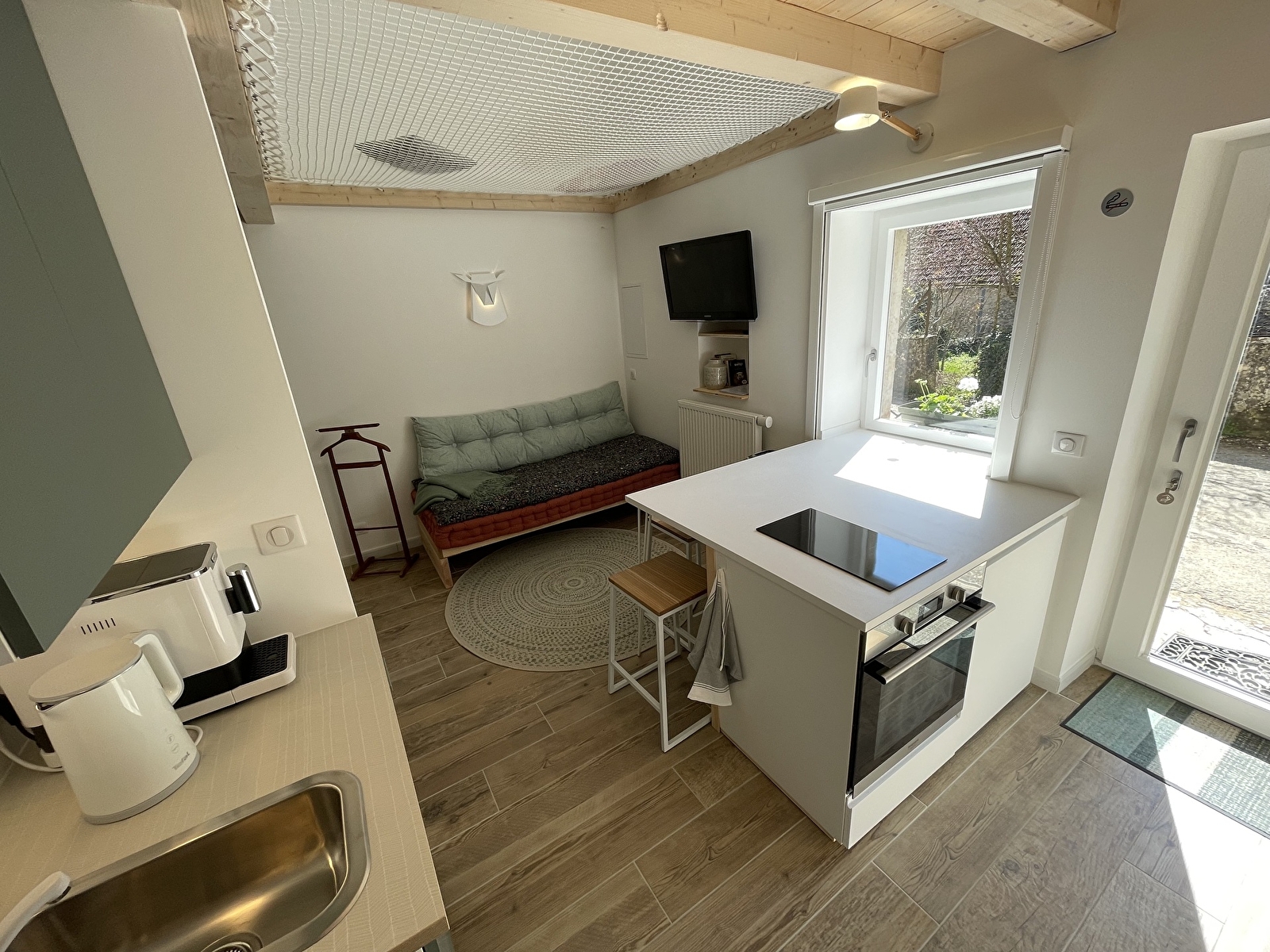 The gîte Cerf cerf ouvre moi is a duplex of 40m² which can accommodate 3 people + 1 baby, it includes :