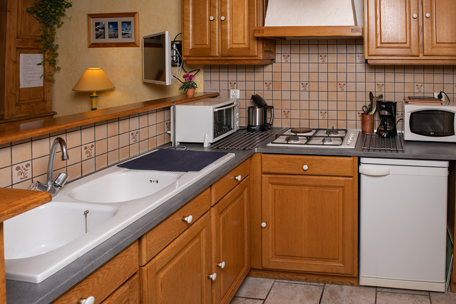Upstairs accommodation in a renovated farmhouse where another gîte is located. Kitchen, bedroom 1: 2 double beds, bathroom, separate wc, adjoining unfenced garden, garden furniture and barbecue available. Electric heating included. Shared washing machine available. One pet allowed. NON-SMOKING GITE