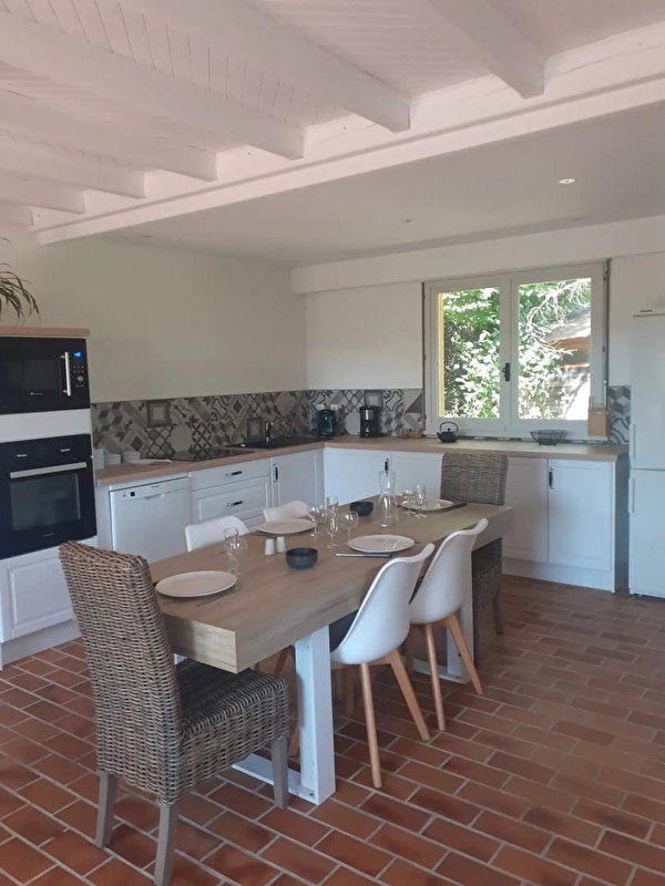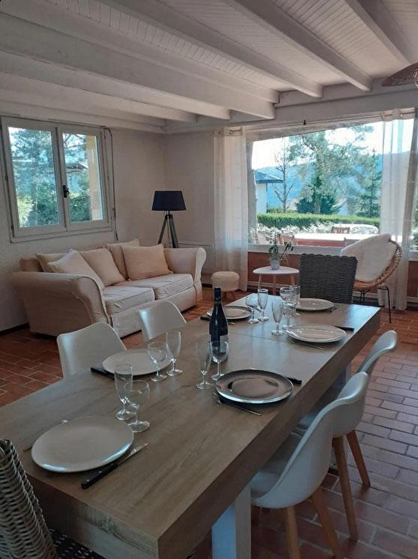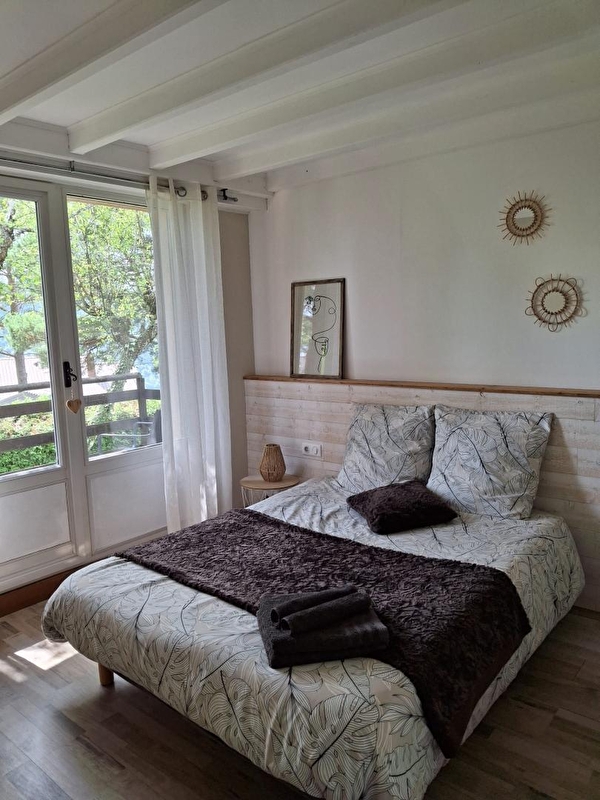 On the heights of Maisod, in a quiet location close to Lac de Vouglans, this house comprises a living room with a fully-equipped kitchen, a sitting area with sofa/TV and wood-burning stove, a library area with children's games and books, a bedroom with 1 double bed (140*190), a bedroom with a double bed (160*200), a bathroom with bath and a separate toilet. The 3rd bedroom, which is only accessible from the outside and is located in the basement (ceiling height = 185 cms), has a double bed (140*190), a kitchenette area and a shower room with WC (ideal for 2 people who want to go away with family or friends while keeping their independence). Outside, you'll enjoy a covered terrace with garden furniture and a shady, wooded garden with deckchairs and garden chairs. Ideally located, the first beaches and the small marina with a boat launch are just 5 minutes away by car, and there are several hiking and cycling trails from the gîte leading down to the lake. You can also taste and discover the secrets of making the famous Comté cheese at the Thoiria dairy (10 minutes by car) and admire the Hériosson waterfalls in around thirty minutes.