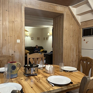 Raised ground floor: veranda, large lounge (ornamental fireplace), kitchen/ dining area. 1st floor: bedroom (double bed), 2 communicating bedrooms (beds: 2 single, 2 bunk), bathroom. Central heating. Garden furniture, BBQ. Ideal site for exploring nature. Cirque de la Fauconnière nearby. Pets allowed on request. Optional cleaning charge: 50€.