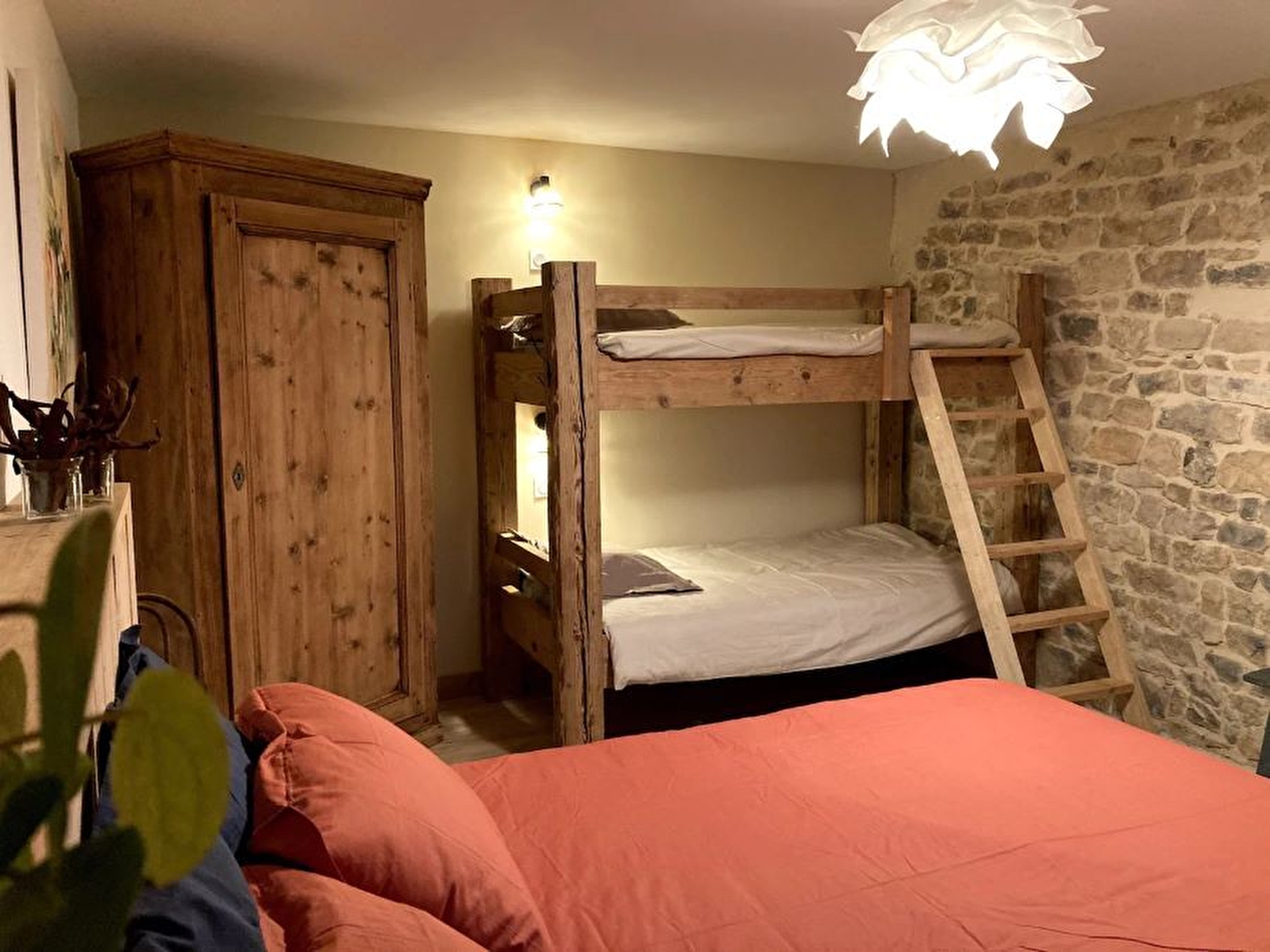 Let yourself be charmed by this gîte, where the combination of stone and wood creates a warm, cosy atmosphere. Housed in an old farmhouse on the 1st floor of the owners' house, this fully-renovated duplex flat comprises a large living room with fully-equipped kitchen, a sitting room with TV and wood-burning stove for cosy evenings by the fire, a bedroom with 1 double bed (160*200) and 2 bunk beds, and a shower room with WC. Upstairs, 2 bedrooms, one with a double bed (160*200) and 2 single beds, and the second with a double bed (160*200) and 2 bunk beds, a bathroom with shower and WC. For your comfort, the beds will be made up on arrival and towels provided. Outside, you'll find garden furniture, deckchairs and a barbecue. Ideally located for nature lovers: hiking, mountain biking, cross-country skiing... you can also discover the Billaude waterfall (7 km) and the Hérisson waterfalls (11 km) or take a trip to Switzerland (35 km).