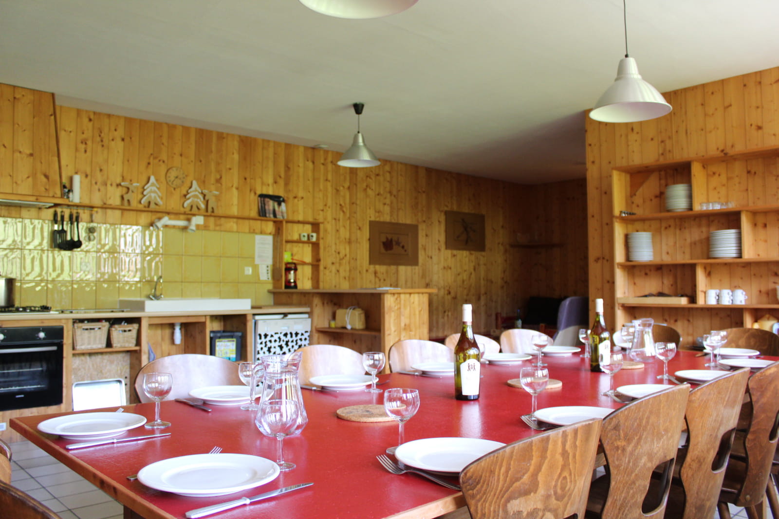 Bright, spacious and functional, the large living room overlooks the garden and the cross-country skiing, mountain biking and hiking trails. Its various nooks and crannies give everyone a place to sit. The large, convivial table is perfect for family meals, card games or passionate discussions.
