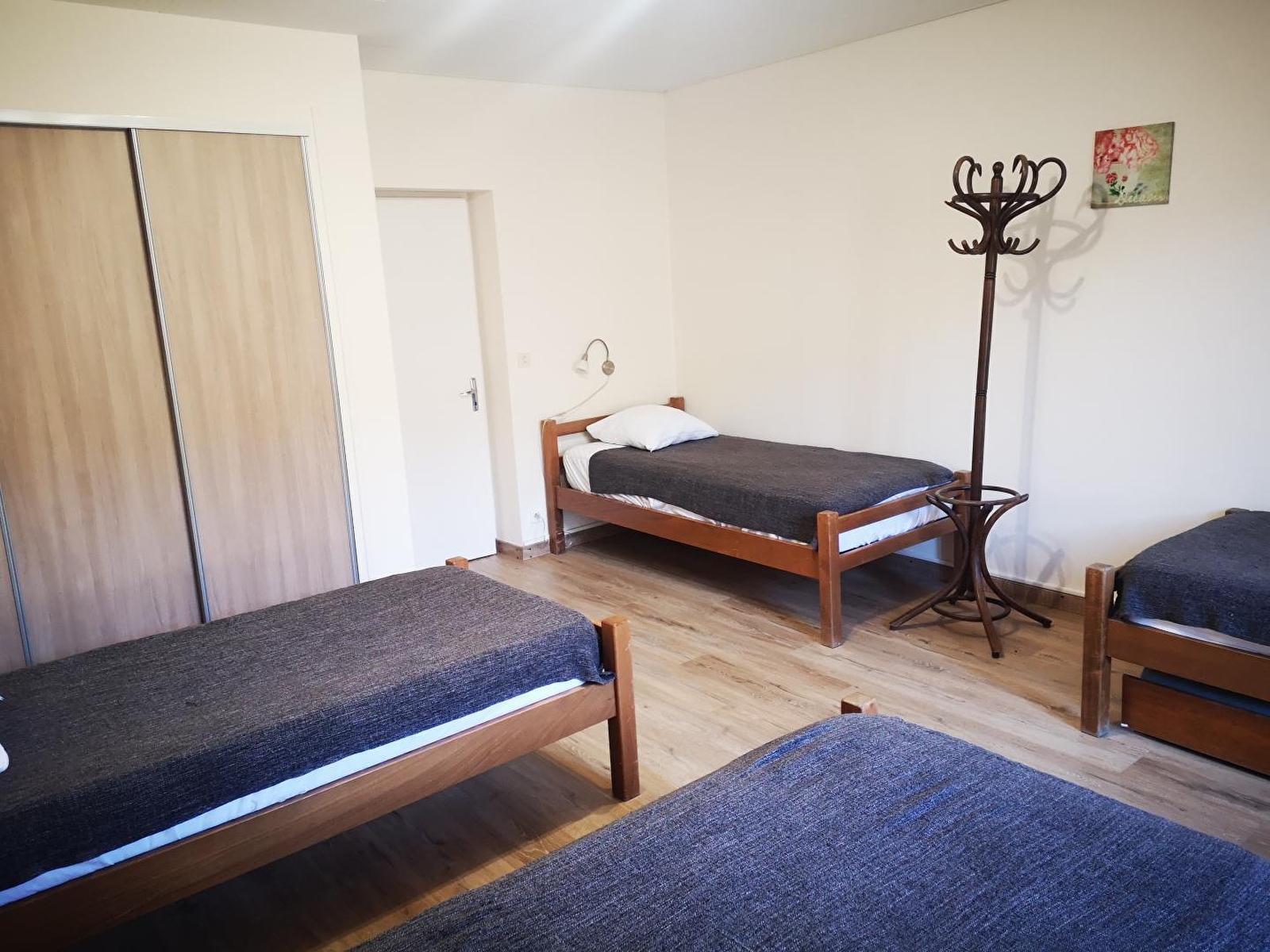 Public building comprising 2 gîtes & another dwelling in peaceful hamlet. Ground floor gîte (74 sq.m.), renovated in 2004. Living room with kitchen area (divan), 2 bedrooms (double bed) (4 single beds), bathroom, WC. Electric heating. TV point.