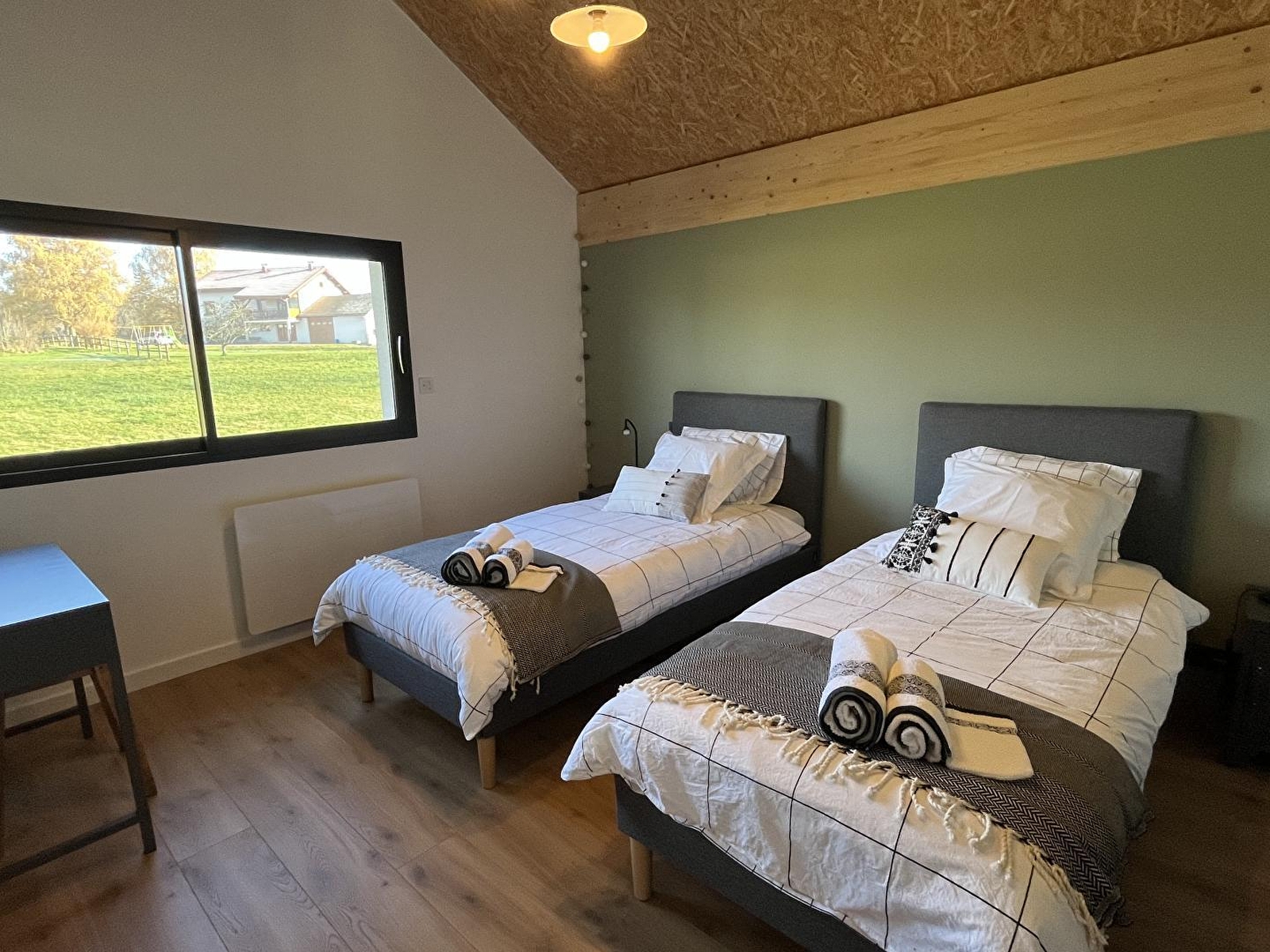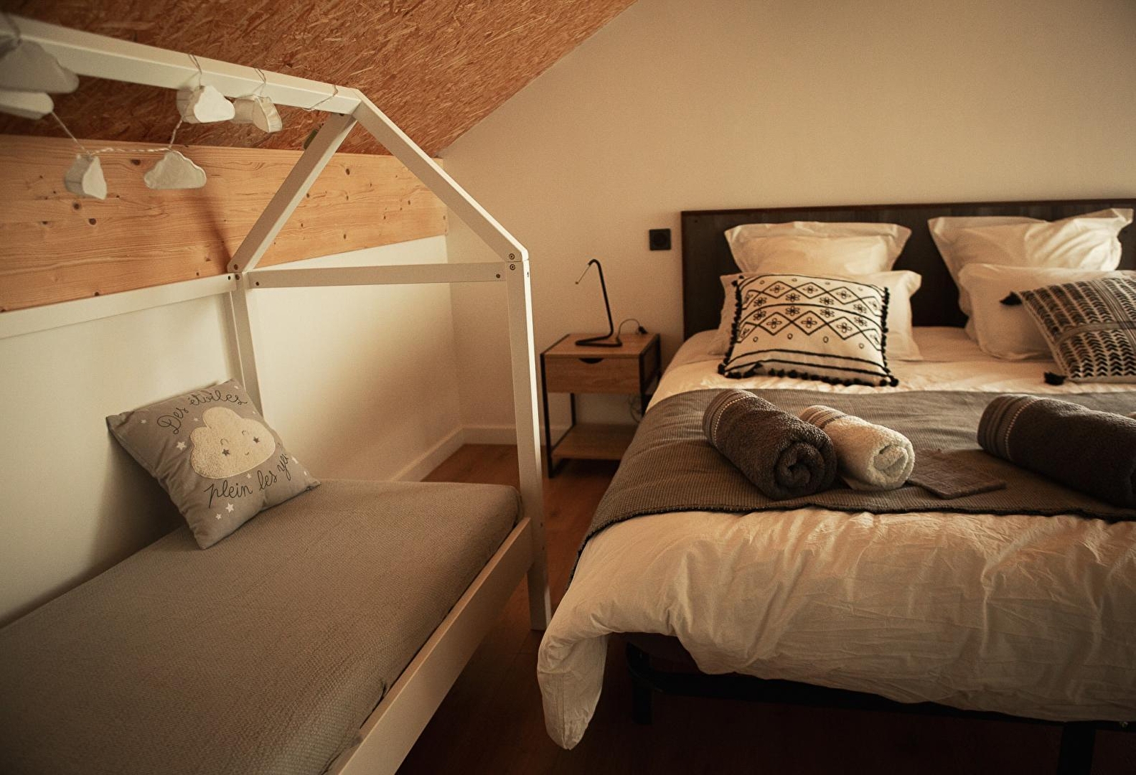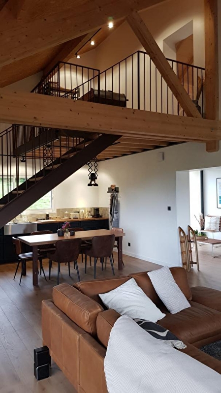 Let yourself be charmed by this contemporary house, decorated in a warm, industrial style. Ground floor: entrance hall with seating area and wood-burning stove, large, bright living room with fully-equipped kitchen, dining area and lounge with sofa, TV, home cinema, speakers and DVD player. A bedroom with 1 double bed (160 x 200), a shower room with shower and WC, garage with washing machine and tumble dryer. Upstairs, you can play table football or relax in the hanging net. You will also find 2 bedrooms: 1 with a double bed (160*200) and a cabin bed (for children up to 6 years) and one with 2 single beds (90*200) that can be twinned, 1 shower room and 1 separate WC. For your comfort, beds will be made on arrival, towels are provided and cleaning is included. Outside, you can enjoy the terrace, complete with garden furniture, lounge and brazier. Ideally situated in the heart of the lakes region, the Hérisson waterfalls are just 5 minutes away, as is the Clairvaux-les-lacs lake. You'll enjoy spectacular walks, including the Pic de l'Aigle and its breathtaking view of the 4 lakes. Or take a trip around Lac de Bonlieu (5 minutes away). You can also discover local products such as Comté and Morbier cheeses at the cheese dairy just 5 minutes from the chalet.