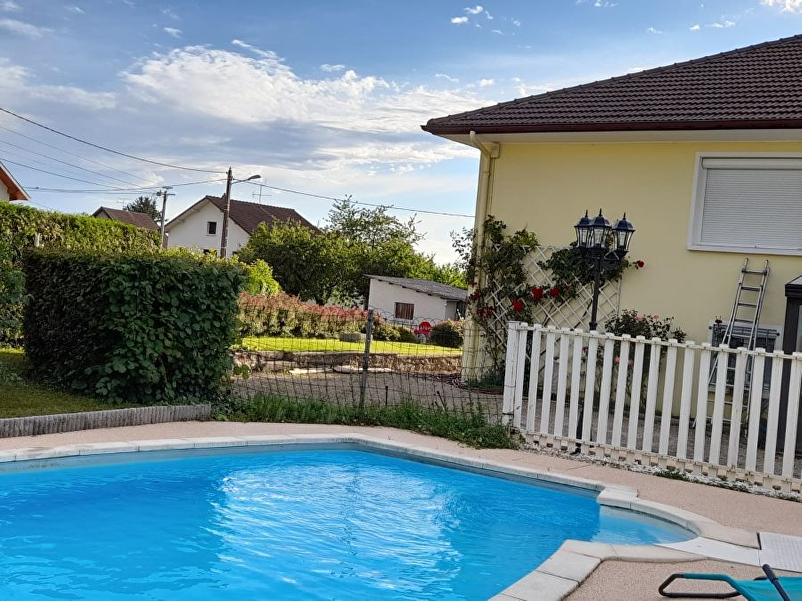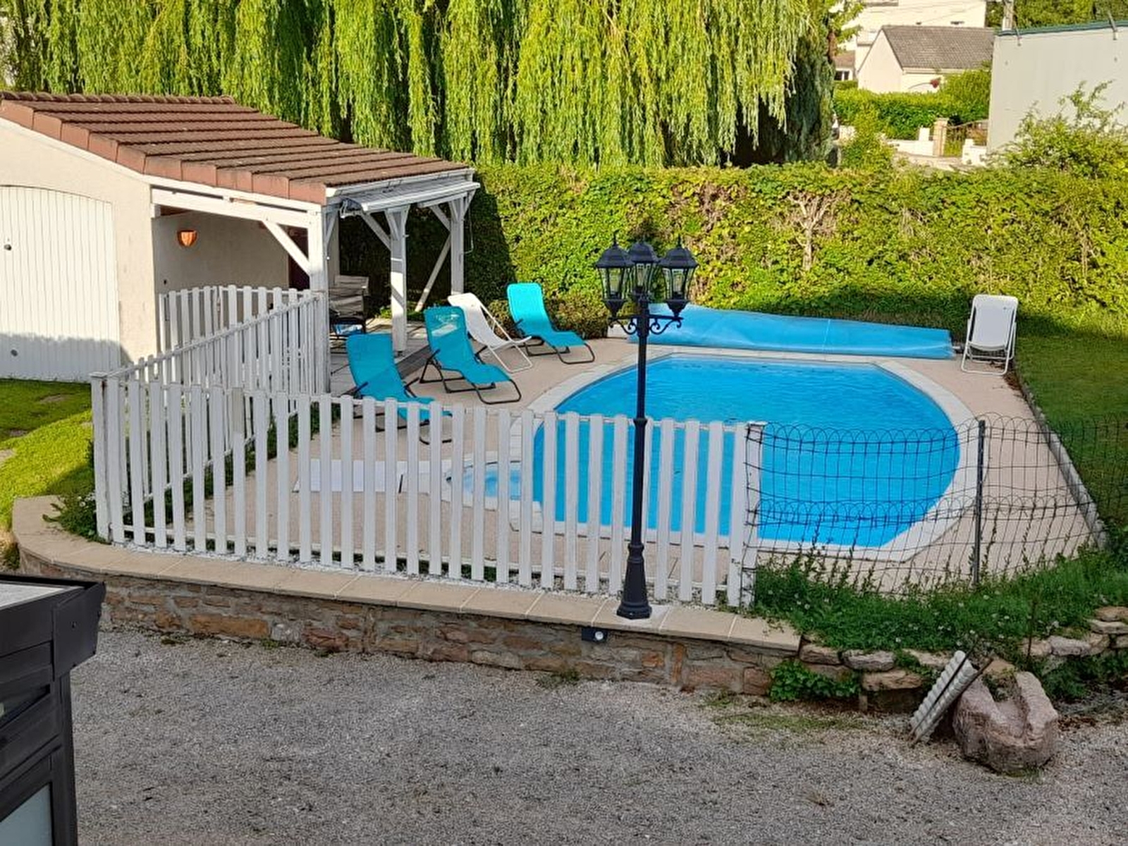 This detached house in a quiet location comprises, on the ground floor, a small sitting area with wood-burning fireplace (provided free of charge), 2 bedrooms, one with 2 single beds and the second with 1 double bed, a utility room with shower and WC, a veranda and a garage. First floor: fully-equipped fitted kitchen, lounge with TV and convertible sofas (possibility of accommodating 1 or 2 extra people on request and at extra cost), dining room with direct access to the balcony with garden furniture, bedroom with double bed (140cm), bathroom with bath and separate WC. Outside, there is a fenced 8 x 4 metre swimming pool (maximum depth 1.5 metres) and a pool house. Deckchairs and a barbecue are also available. For your comfort, beds will be made on arrival and towels provided. Ideally located for exploring the spa town of Lons le Saunier, Louhans and its famous market, or the Lake District. Note: gîte accessible for PRM (stairlift)