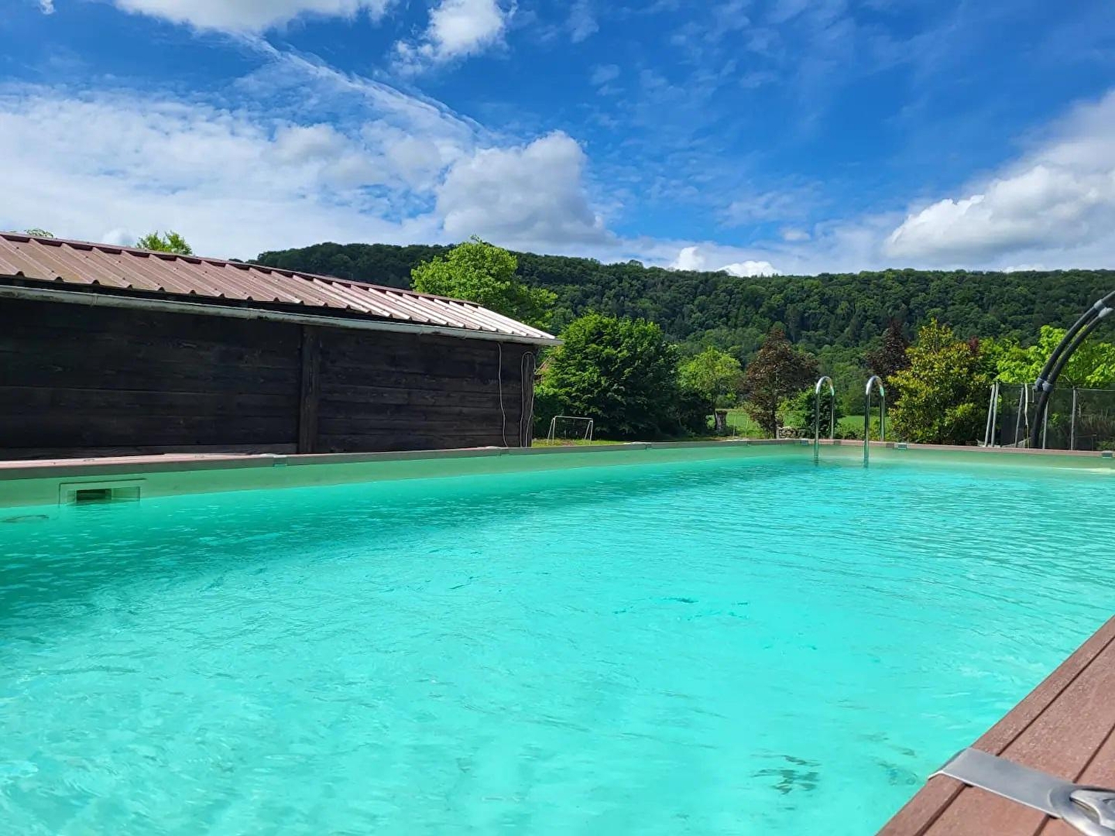 If you're looking to get together with family or friends, this semi-detached house is just the place! The ground floor comprises a fully-equipped kitchen, a large living room with dining area, lounge and TV, and a shower room with WC. Upstairs, there are 5 bedrooms, each with 1 double bed (160*200) and a dormitory room with 6 trundle beds, a shower room and separate WC. For your comfort, beds will be made up on arrival and towels provided. Outside, you'll find a terrace with garden furniture, barbecue and deckchairs, and a 2000 m² par c where you can enjoy a wide range of leisure facilities: above-ground swimming pool (9m*4m*1.40m), petanque area, table football and trampoline, relaxation area with hammock. Ideally located, Port-Lesney is a charming village with a bakery, restaurants, swimming and canoeing on the Loue. You can discover 2 UNESCO World Heritage sites: the Saline Royale d'Arc-et-Senans and the Grande Saline de Salins les Bains. Note: a compulsory cleaning charge will be applied automatically at the time of booking.