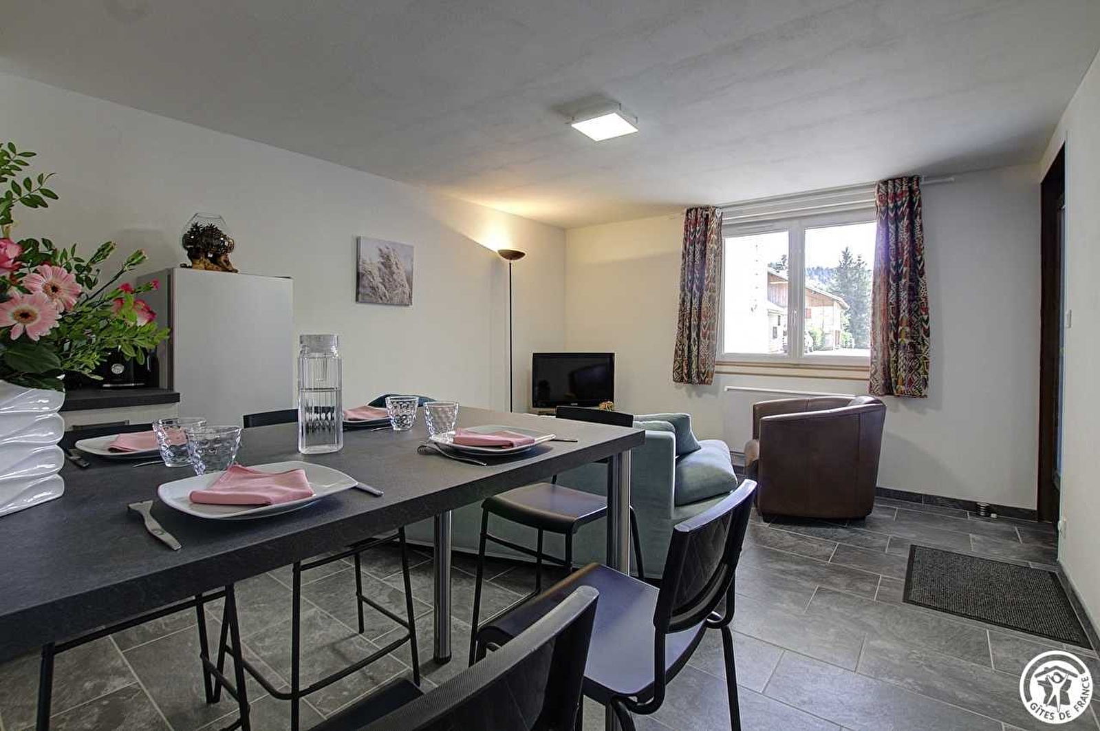 In the heart of the Hameau de Saint Sulpice, on the Plateau d'Hauteville commune, the Gîte du Marais (45m²) is on the ground floor of the house, with a private, independent terrace. This gîte has been renovated to offer you a bright gîte with quality materials. There is a private parking space in front of the gîte. The main entrance opens onto a functional, fully-equipped kitchen with a dining area and a sitting area. A corridor leads to an independent toilet, a shower room and two bedrooms, with direct access to the private terrace. The first bedroom has a 140*190 bed, while the second has a 90*190 bed and a second 90*200 bed.