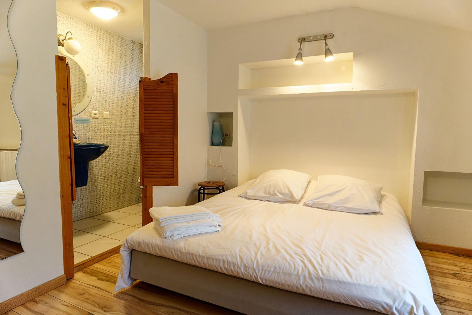 This charming former hotel has been converted into a gîte by the local council, making it the perfect place to spend your holidays with family or friends. The ground floor comprises a large living room with sitting area (board games and books available), a fully-equipped kitchen, a utility room and a toilet. Upstairs, there are 7 bedrooms (including 1 family suite with 2 bedrooms), each with its own shower room, WC and TV. For your comfort, beds will be made on arrival and towels are provided. Outside, there's a small terrace with garden furniture and a plancha so you can make the most of the fine weather. The gîte is located next to a 1.5-hectare fully shaded park with a children's play area, a City Park, a Pump Track, a boules pitch and a community café. Just below the church flows the Sorne, a trout river where anglers can indulge their passion and children can splash about. The gîte is located 1 km from the "voie verte" (greenway), which provides access to the lowland cycle routes to Louhans and the mid-mountain cycle routes to Lons le Saunier. The town of Lons le Saunier is 3 km away and can be reached by bike. Note: the rooms are composed as follows: 2 rooms with 1 double bed in 160 - 3 rooms with 1 double bed in 140 - 1 room with 1 double bed in 180 - 1 room with 2 single beds The family suite is composed of a room with 1 double bed in 140 and a room with 1 double bed in 180 In low season, possibility of renting for 1 night on request. Cleaning, linen hire (beds made) and bathroom linen hire: 200 euros payable.