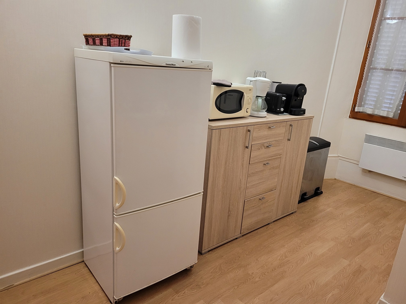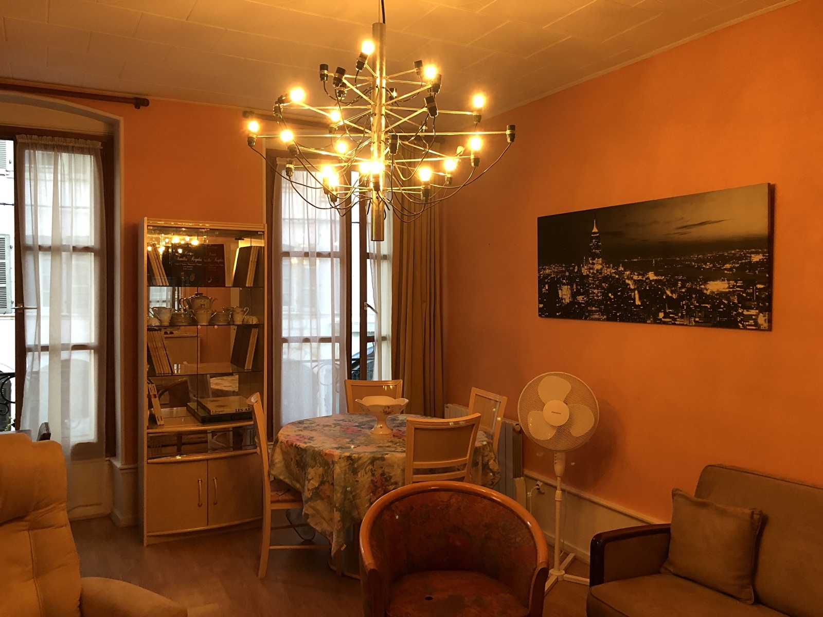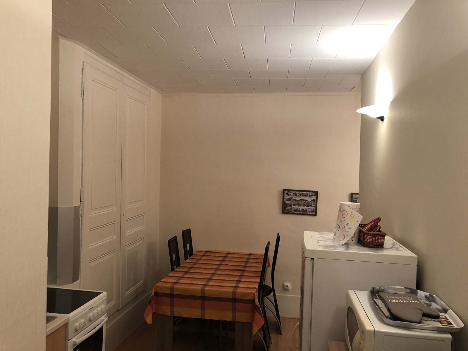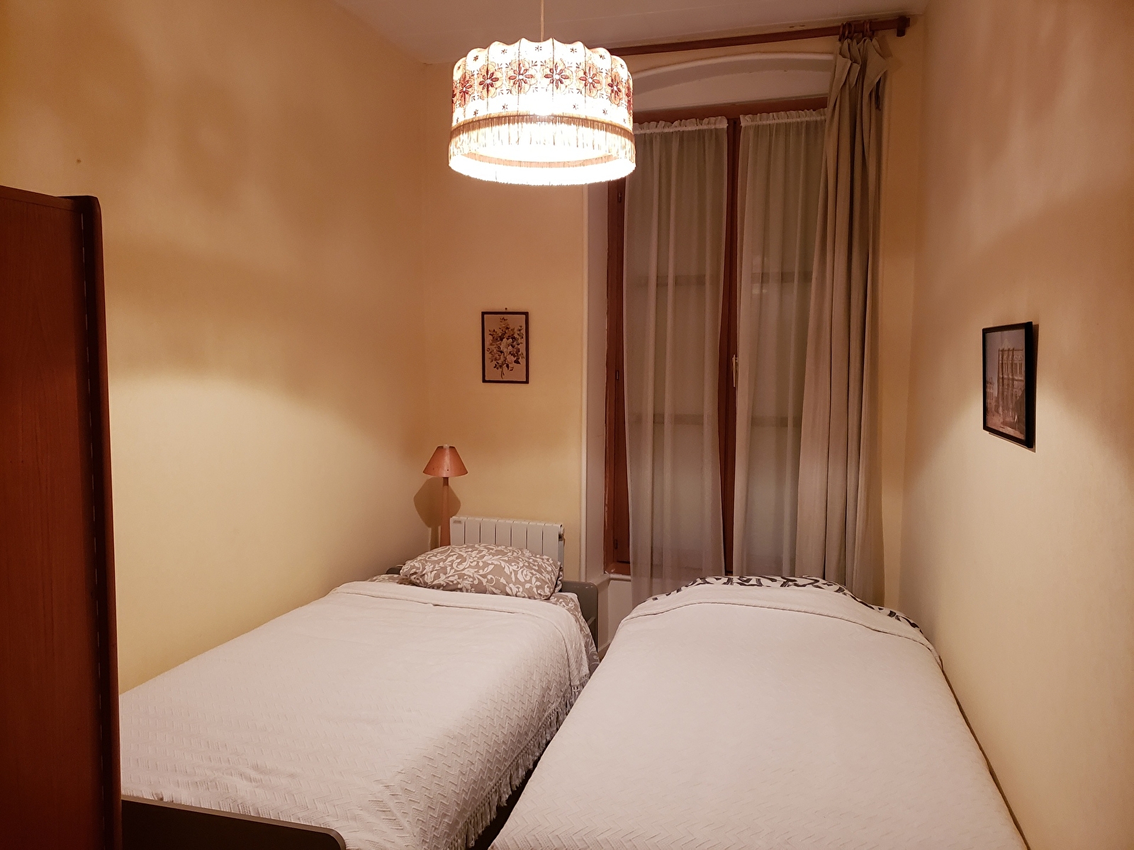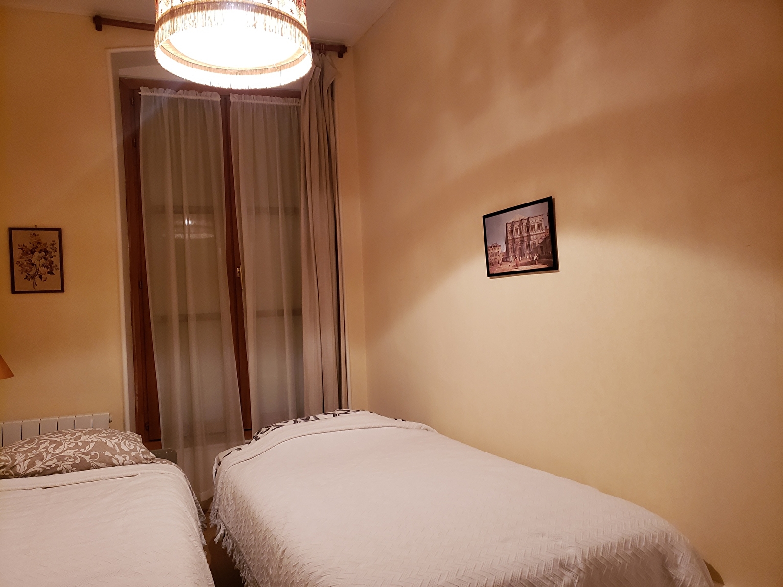 Located on the first floor of a two-storey building and secured by a digicode, the flat has two bedrooms (one bedroom with a double bed and one bedroom with two single beds), a fully-equipped kitchen, a large living room and a dining room.