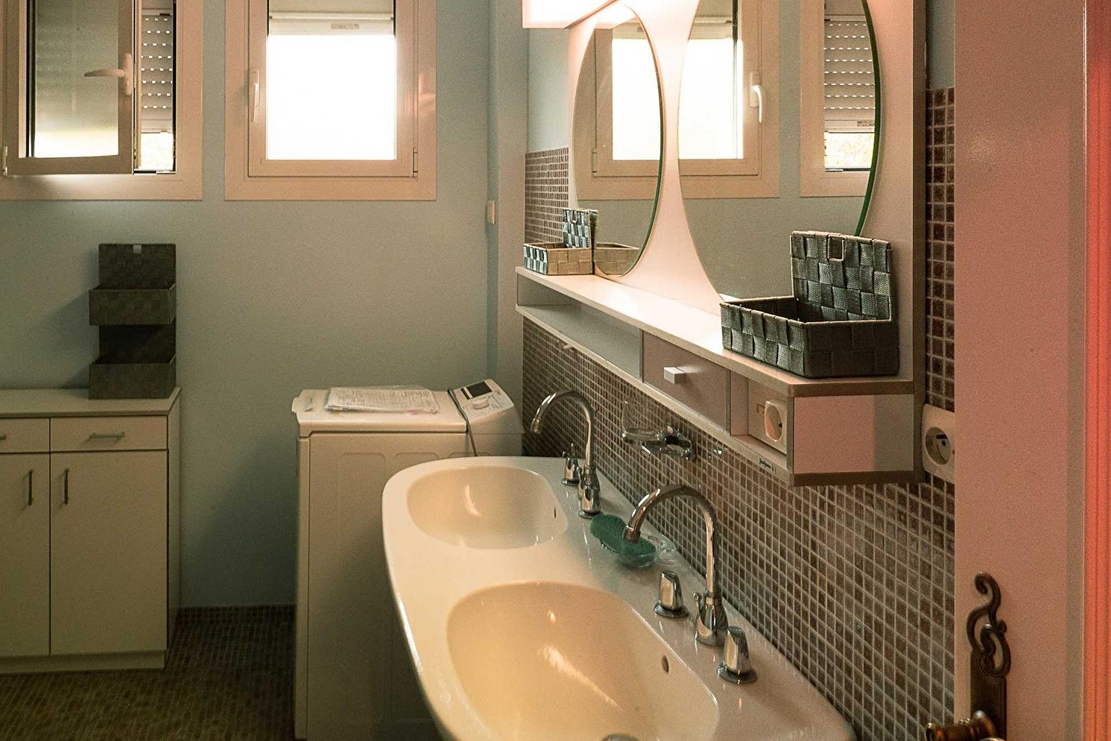 Ideally located in the heart of the Jura vineyards, just a few kilometres from the spa town of Lons le Saunier, this pretty gîte is situated in a quiet village above the owner's home. A small staircase leads to your own entrance. On the 1st level, there is a lovely living room with a dining area and a sitting area leading directly onto a large 50 m² terrace overlooking the garden and offering a panoramic view of the Revermont. The terrace is equipped with garden furniture, deckchairs and a gas barbecue. Independent, fully-equipped kitchen also opening onto the terrace. Two bedrooms, each with a 160cm bed. Bathroom with bath and double washbasin, separate wc. On the 2nd level, a shower room and two bedrooms. Outside, adjoining unfenced grounds (shared with the owner) offering a lovely view over the vines. As your host is a hiking guide, he will be happy to share his knowledge with you and guide you along the roads of the Jura on request. Don't wait any longer to book!