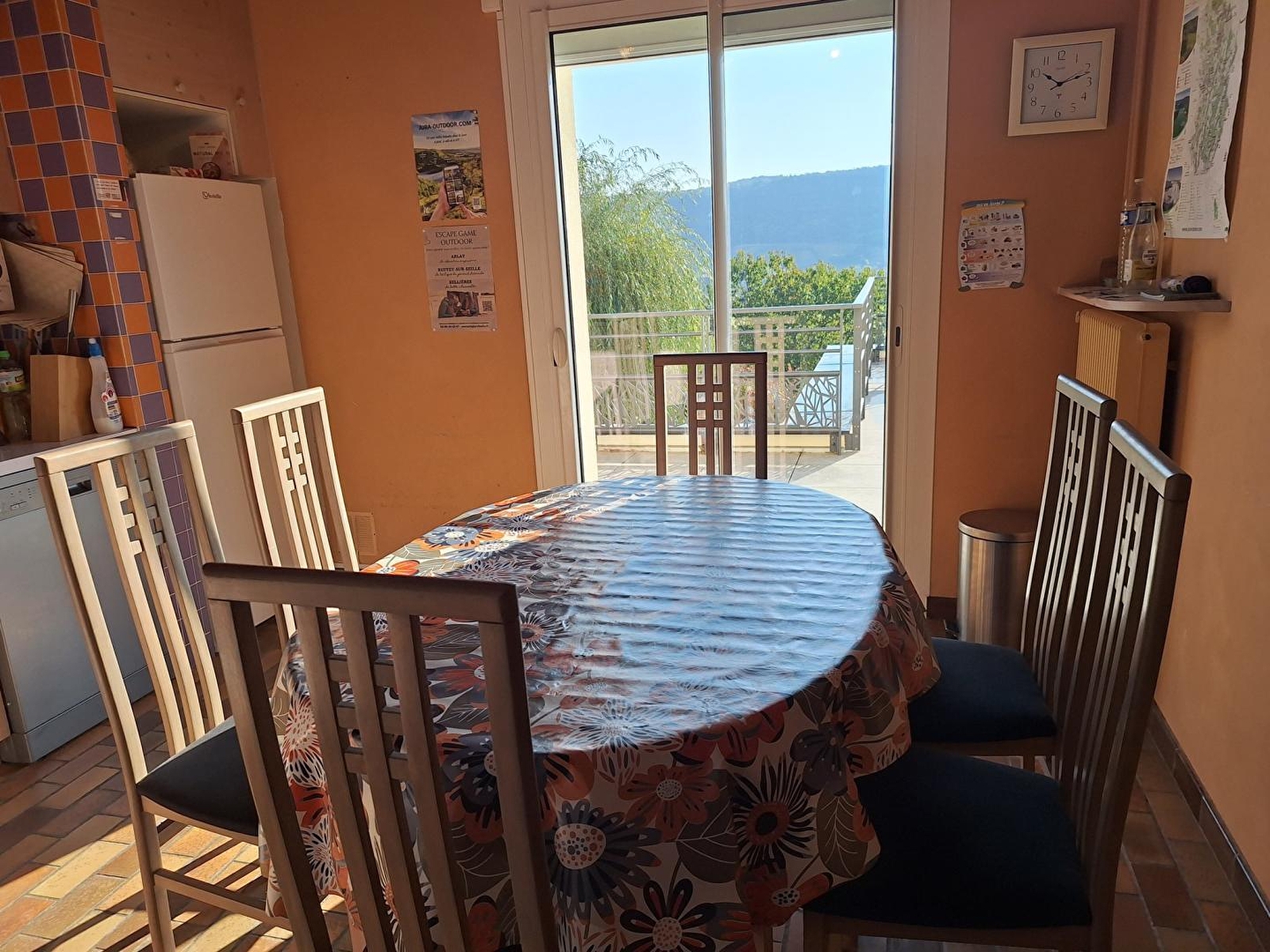 Ideally situated in the heart of the Jura vineyards, just a few kilometres from the spa town of Lons le Saunier, this pretty gîte is located in a quiet village above the owner's home. A small staircase will lead you to your independent entrance. On the 1st floor, a lovely living room with dining area and sitting area leading directly onto a large 50 m² terrace overlooking the garden and offering panoramic views of the Revermont. Independent, fully-equipped kitchen. Two bedrooms, each with a 160cm bed. Bathroom with bath and double washbasin, separate wc. On the 2nd level, a shower room, a 3rd bedroom with a separable king-size bed (2mx2m), possibility of a 3rd 90cm bed, and a 4th bedroom with a 140x190cm bed. Outside, adjoining unfenced garden (shared with the owner) with lovely views over the vineyards. Garden furniture under the weeping willow, barbecue. As your host is a hiking guide, he will be happy to share his knowledge with you and guide you along the roads of the Jura on request. Don't wait any longer to book!