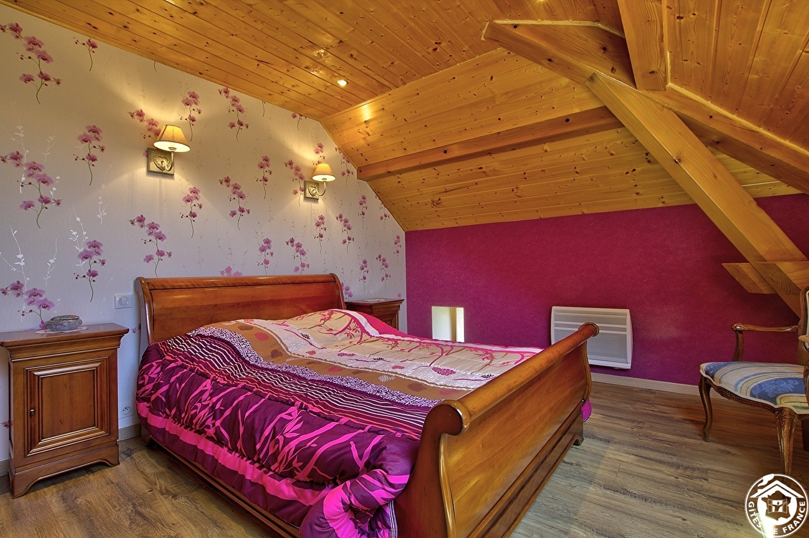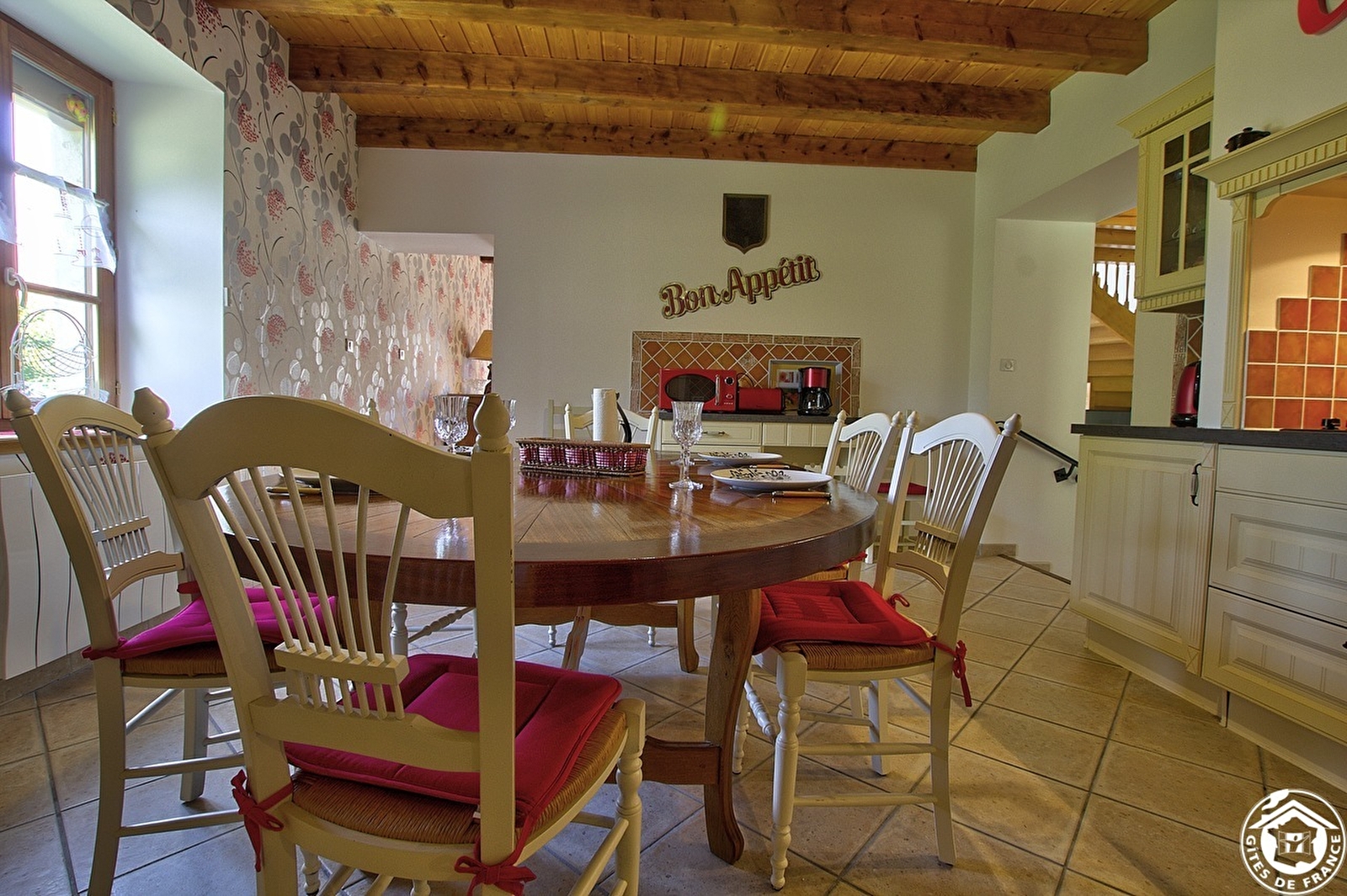At an altitude of 860 m, in a hamlet near Hauteville (6 km), a large, independent 200 m² gîte on different levels, with capacity for 8 people and 3 bedrooms. A shared courtyard leads to a relaxing lounge, a large, functional and well-equipped kitchen, and a shower room with an atypical Scandinavian-style cedarwood shower. Four steps further down, a large living room and sitting area with large picture windows and through-view light, an Alsatian wood-burning stove for the winter seasons; a beautiful veranda with relaxing lounge opening onto the garden. A few steps further up, a wooden staircase leads to a mezzanine with a double bed (140cm) and 3 bedrooms: two with 140x190cm beds, one of which has a dressing room, and one with two 90x190cm beds, which can accommodate an extra person; bathroom, separate WC with washbasin. Electric and wood heating. Private garage for two vehicles. This gîte has been renovated in a family home style, using quality materials, and is ideal for short or long stays with friends or family. Close to cross-country and downhill ski resorts, come and discover a green and mountain setting where the owners will be delighted to give you their best addresses. Two sledges are at your disposal. For 4 to 8 people, sliding scale of charges.