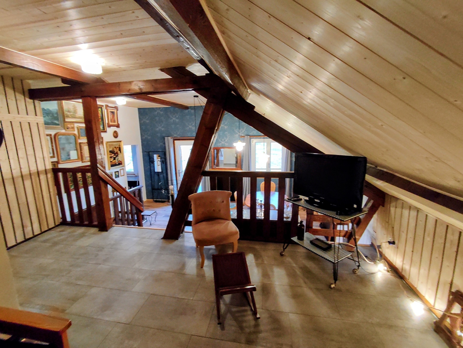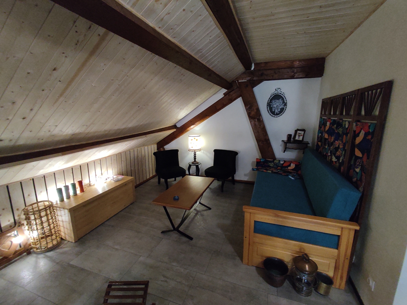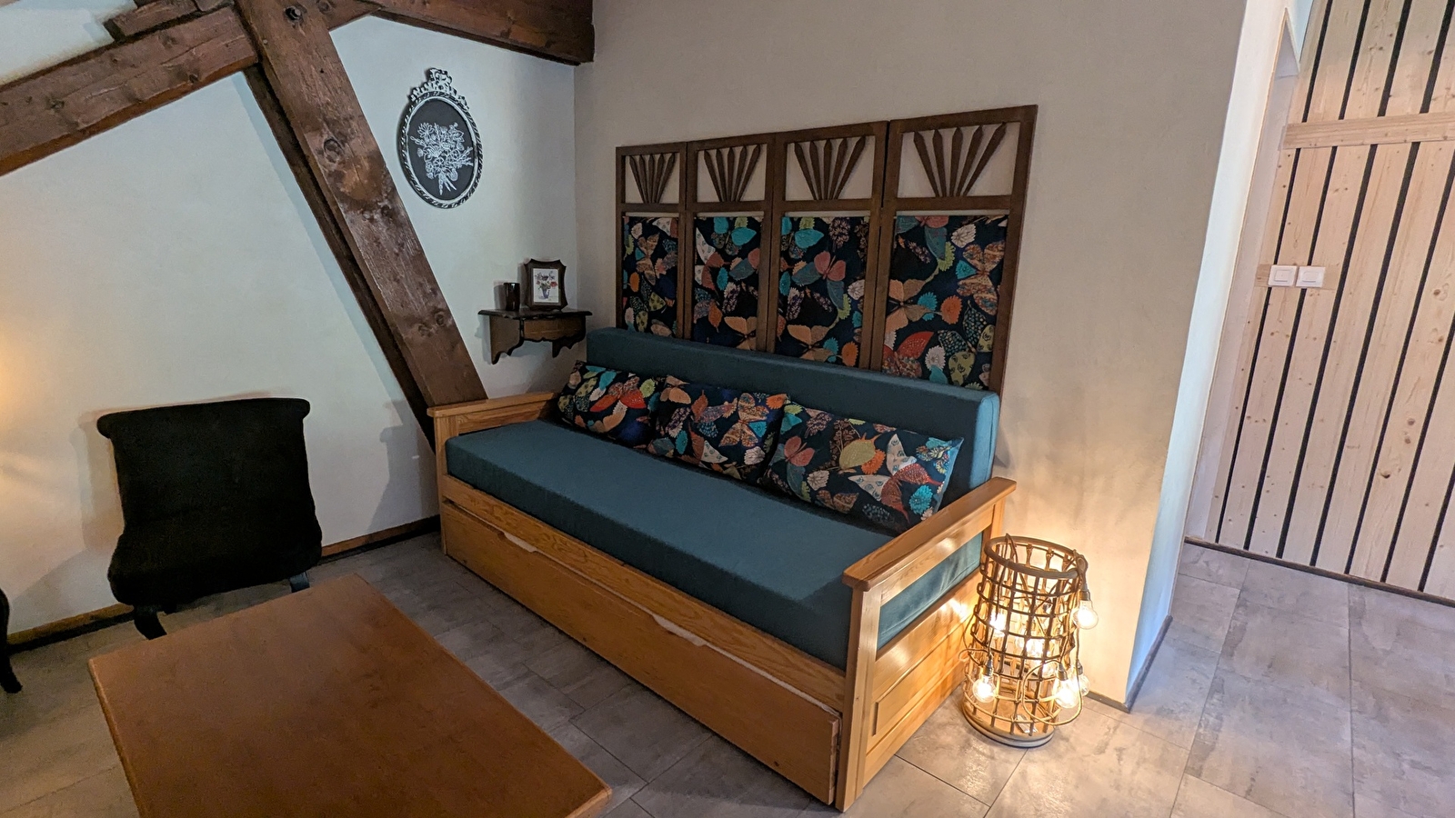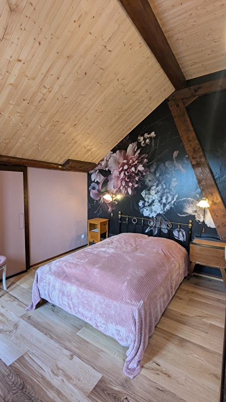 The gîte "Là-haut" is decorated in a vintage style, with lovingly sourced furniture and objects. Discover our cosy interior with two comfortable bedrooms decorated with taste and authenticity with cosy beds and soft duvets for a well-deserved rest. Enjoy our cosy living room for lively games of tarot and a spacious dining room for delicious meals with family or friends served on vintage crockery but prepared in the fully-equipped kitchen with modern appliances. With its magnificent views it is an ideal location for nature lovers and sports enthusiasts with downhill and cross-country ski slopes, numerous hiking and mountain bike trails in the immediate vicinity.