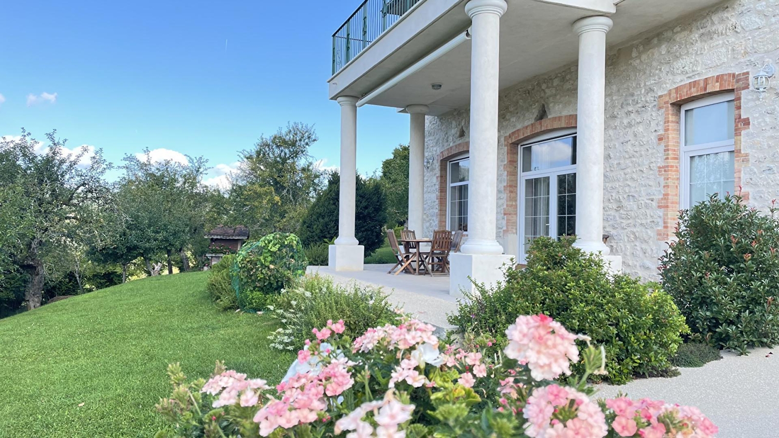 Entrance is from the private courtyard below, then onto the 50 m² covered terrace where 4 large columns stand out in front of a magnificent stone façade.