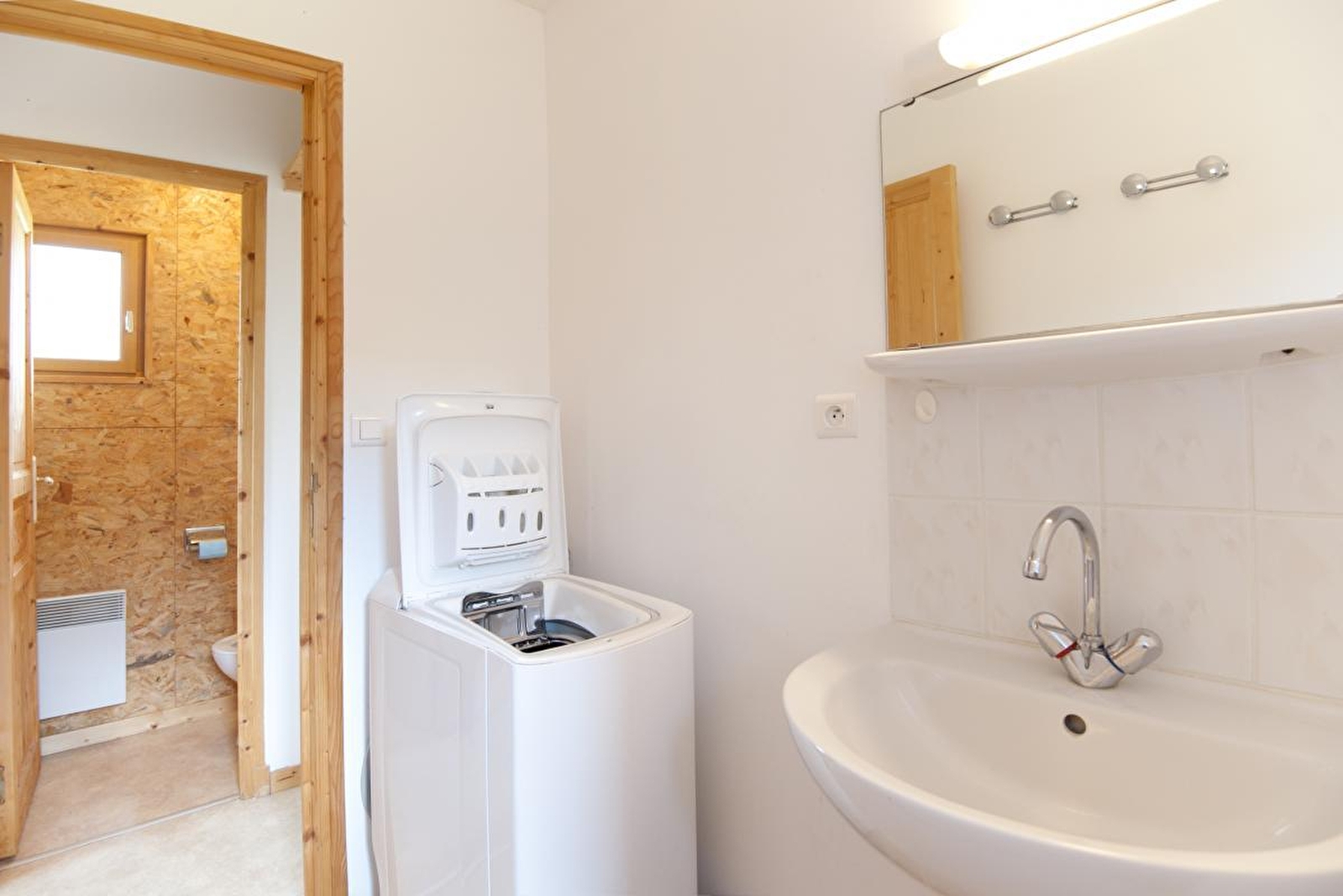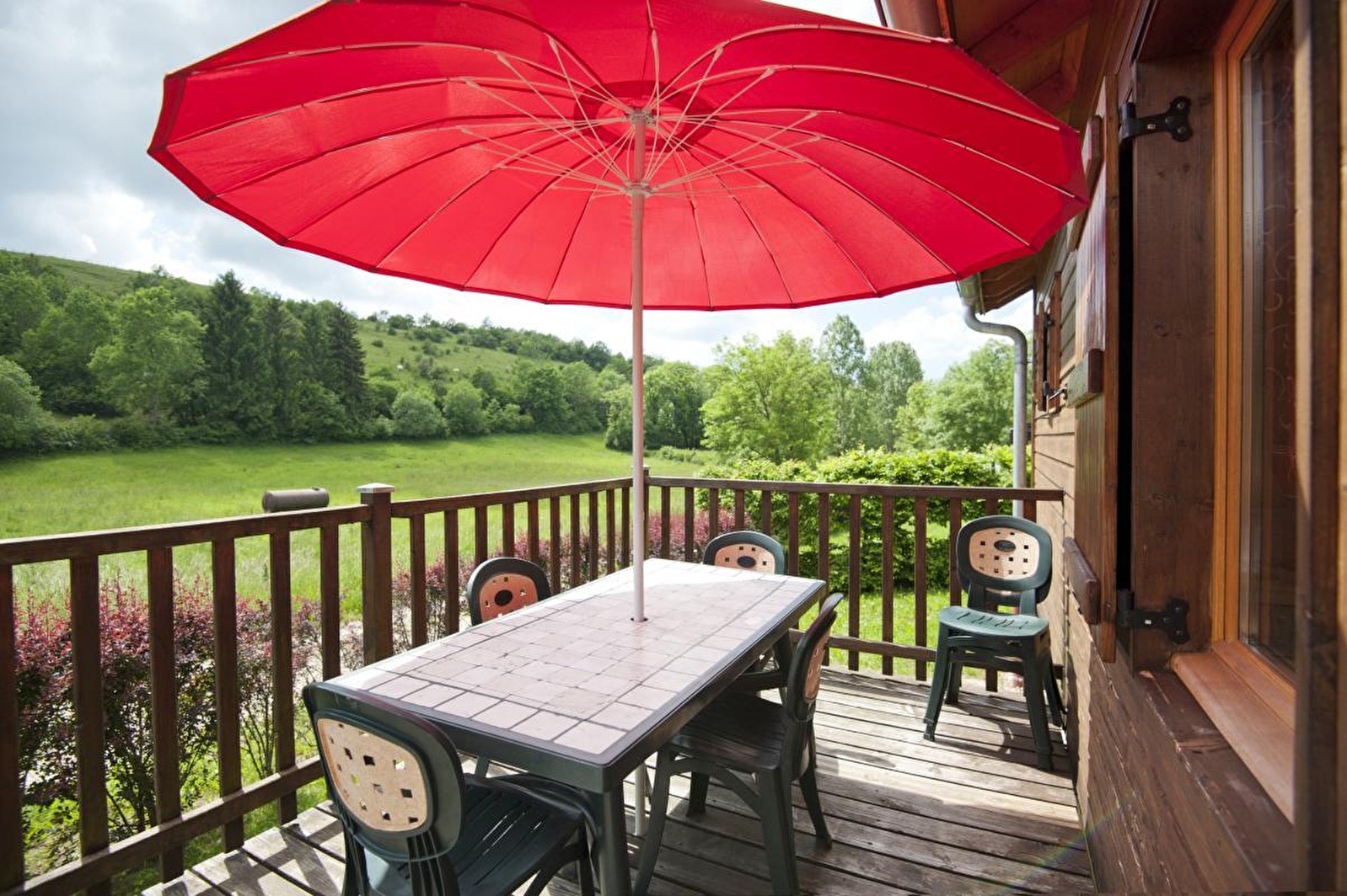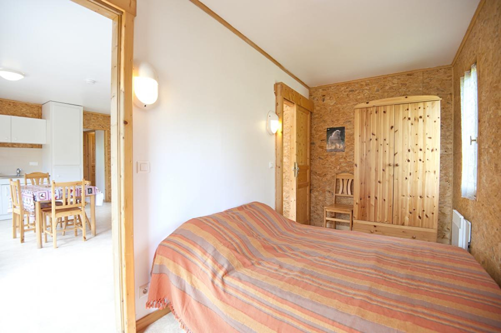 Wooden cottage (50 sq.m.) near village & fishing lake. Access via steps. Large terrace (10 sq.m.). Open plan living room/kitchen area/lounge (double sofa bed, TV point), 2 bedrooms (double bed) (2 single bunks), shower room, WC. Electric heating. Private parking, garden.