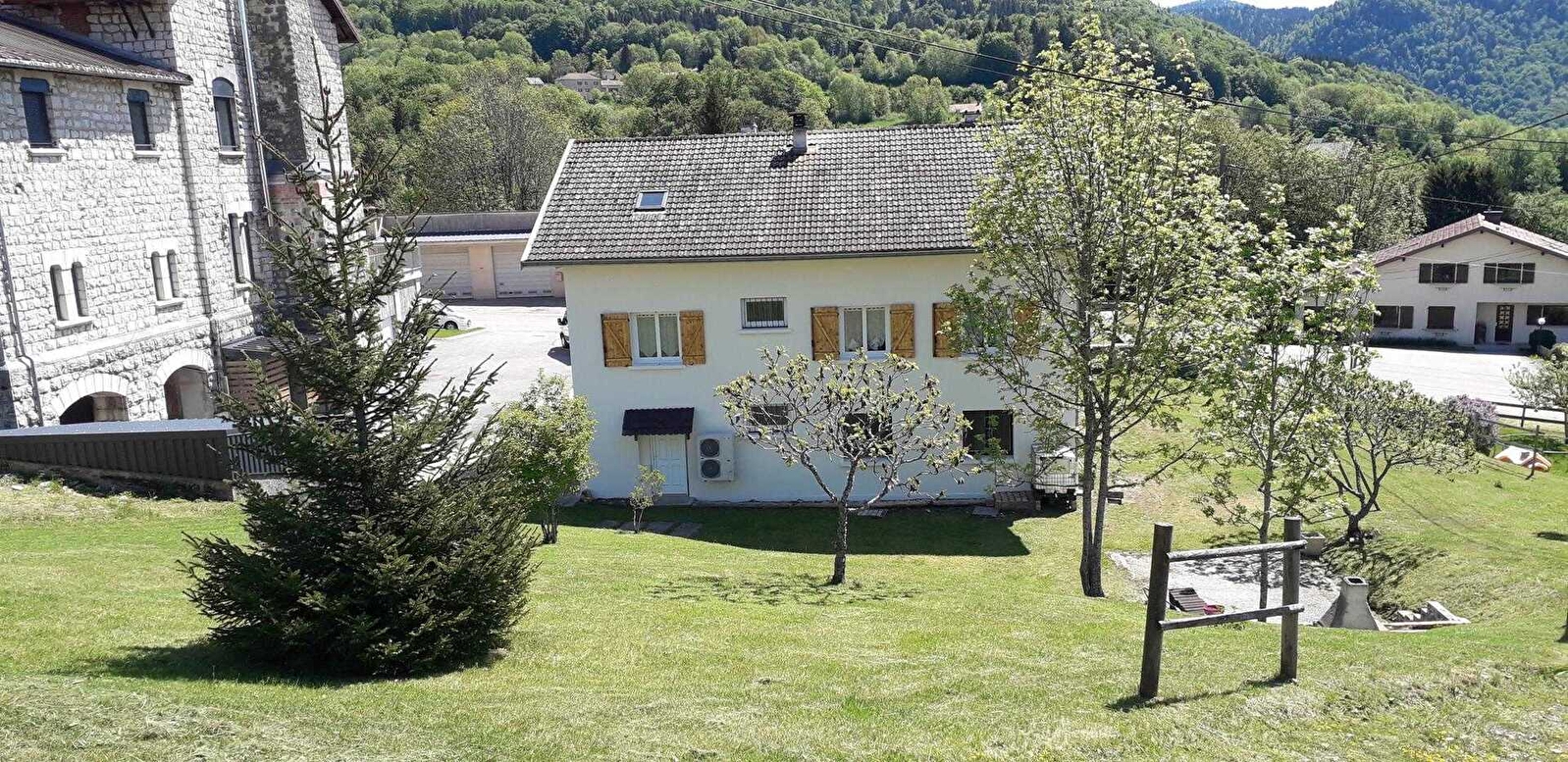 Gîte (4 people) on 2nd floor of house comprising another gîte (6 people) and long-term rented property, near old cheese dairy in peaceful little village. Shared entrance and inside staircase to access gîte on top floor. Hall opening onto living room/lounge, fitted kitchen, bedroom (double bed), shower room/WC. Mezzanine (open-tread stairs) with attic sleeping area. Oil-fired heating. Beds made on arrival.|Enjoy the peaceful setting in courtyard shared with other gîte. In winter: cross-country ski runs (17 km) for all levels of ability. In summer: walking/hiking trails, cross-country running, all sorts of water-based activities (swimming, fishing, canoeing, etc.).