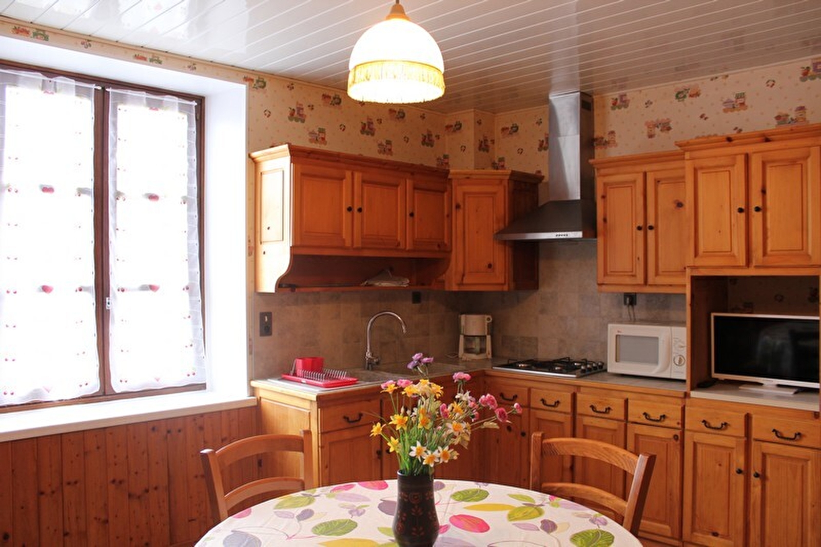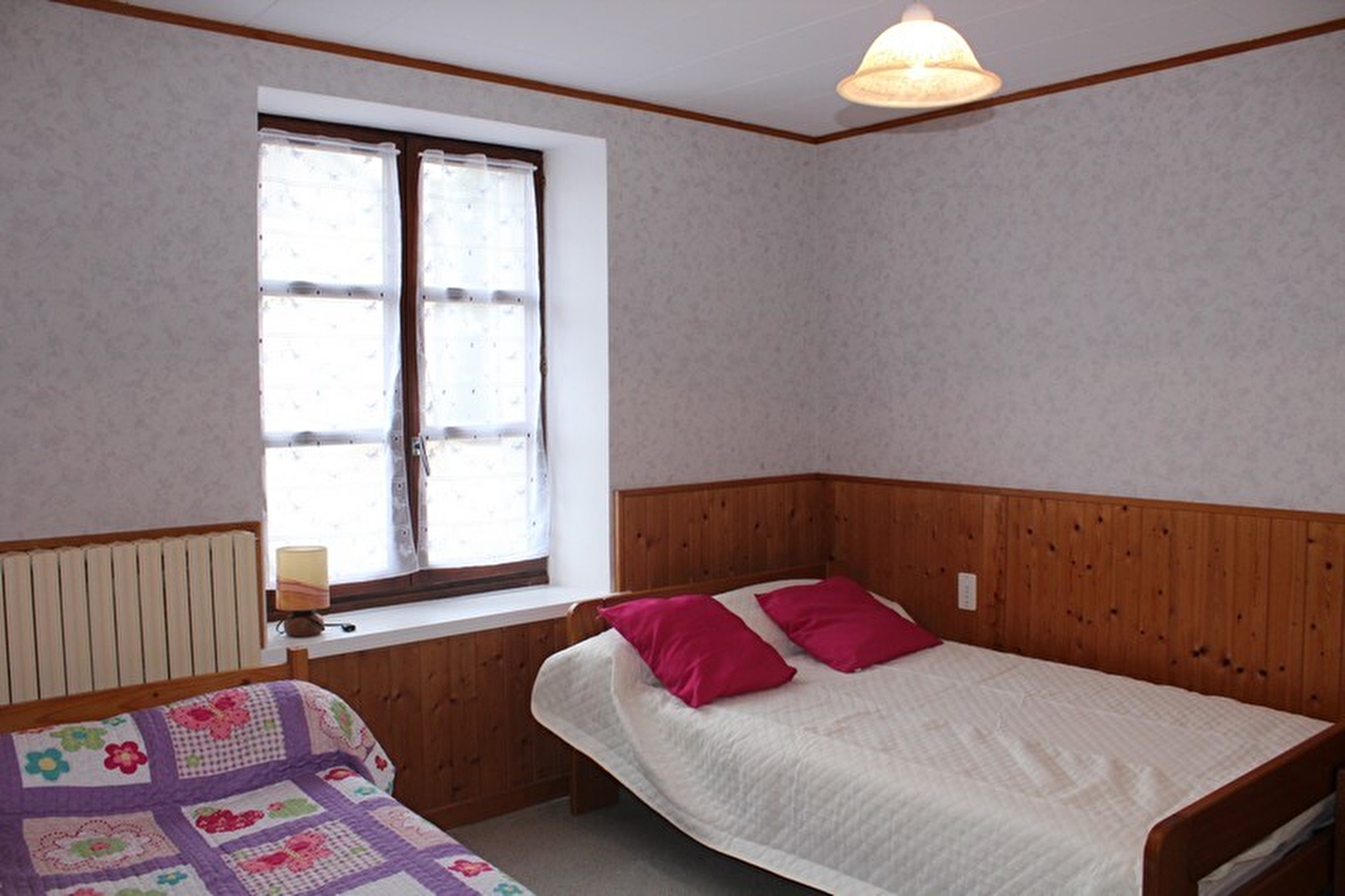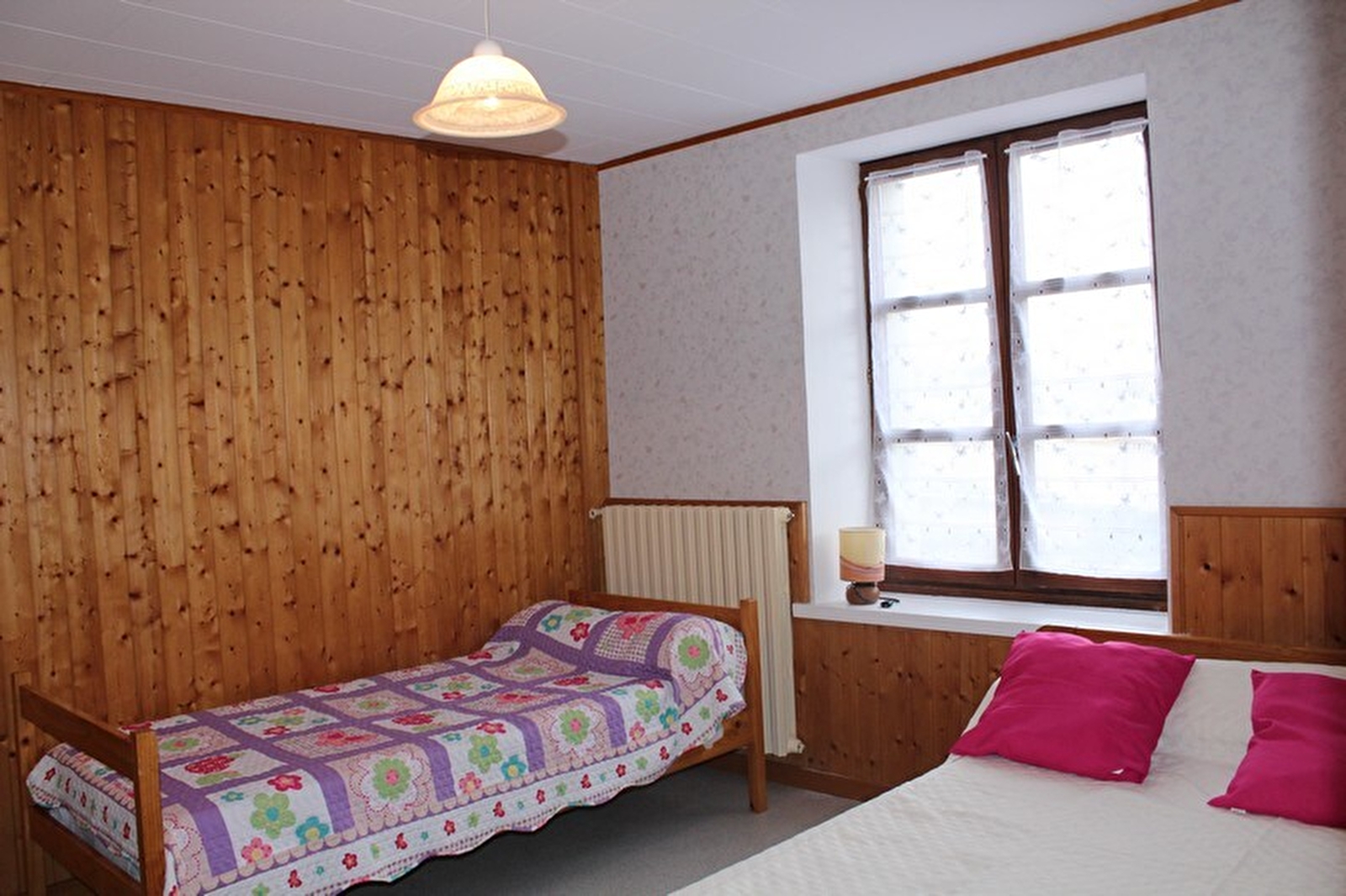 In the heart of the Parc Naturel du Haut Jura, close to the ski slopes, the Lacs region and the Hérisson waterfalls, in a small, quiet village but not far from the shops, this ground floor flat adjoins the owners' house. Kitchen, bedroom 1: 1 double bed, bedroom 2: 1 single bed and 1 double bed, bathroom with bath and shower, separate wc, adjoining unfenced garden, courtyard, garden furniture, barbecue. Central heating. All charges included. Optional: cleaning package. Cot and high chair available on request.