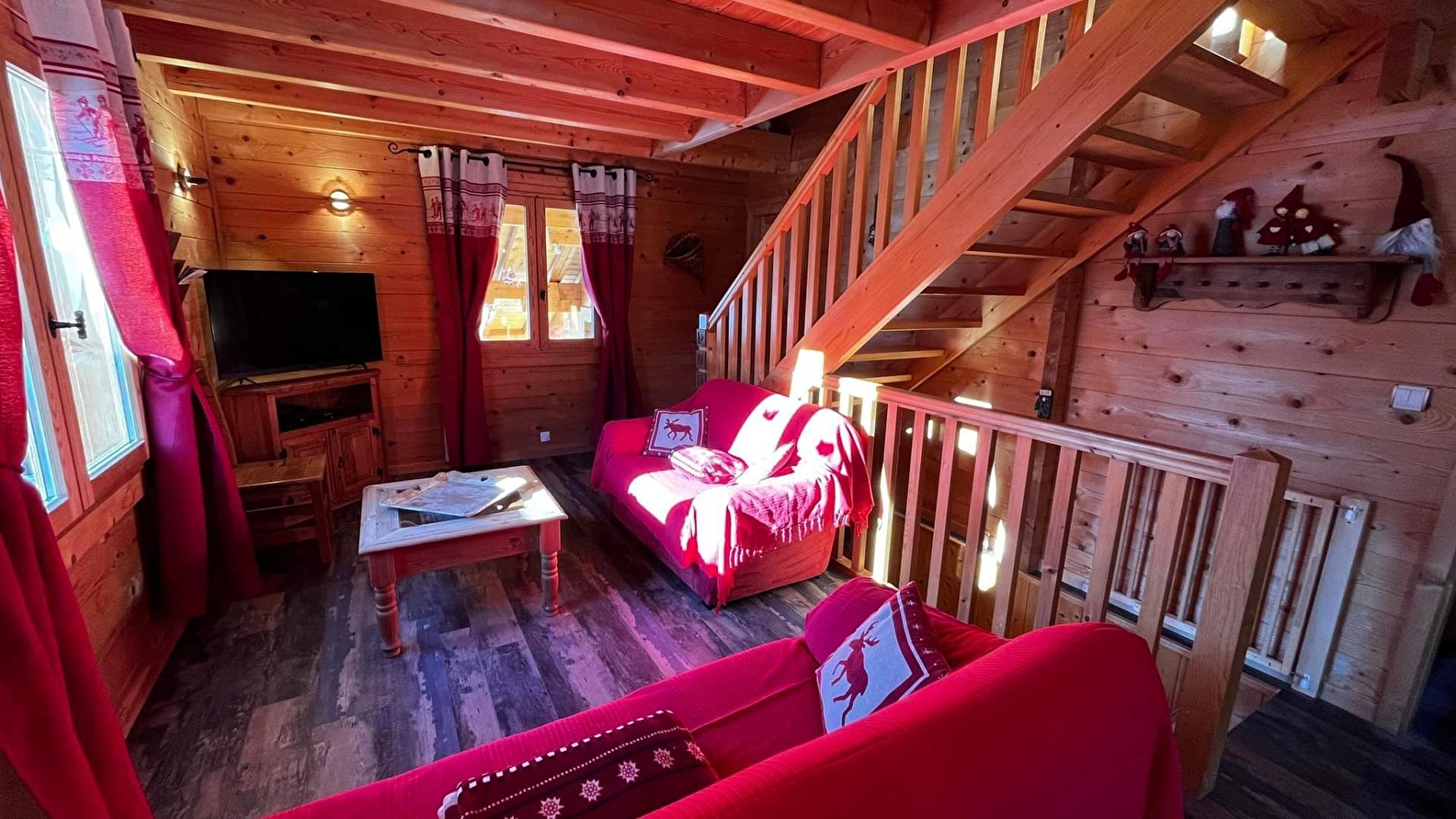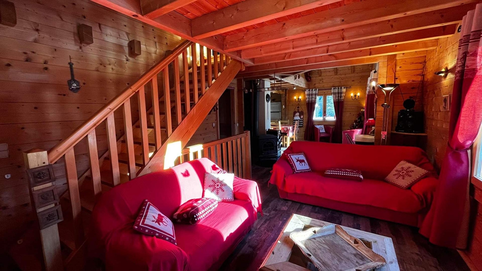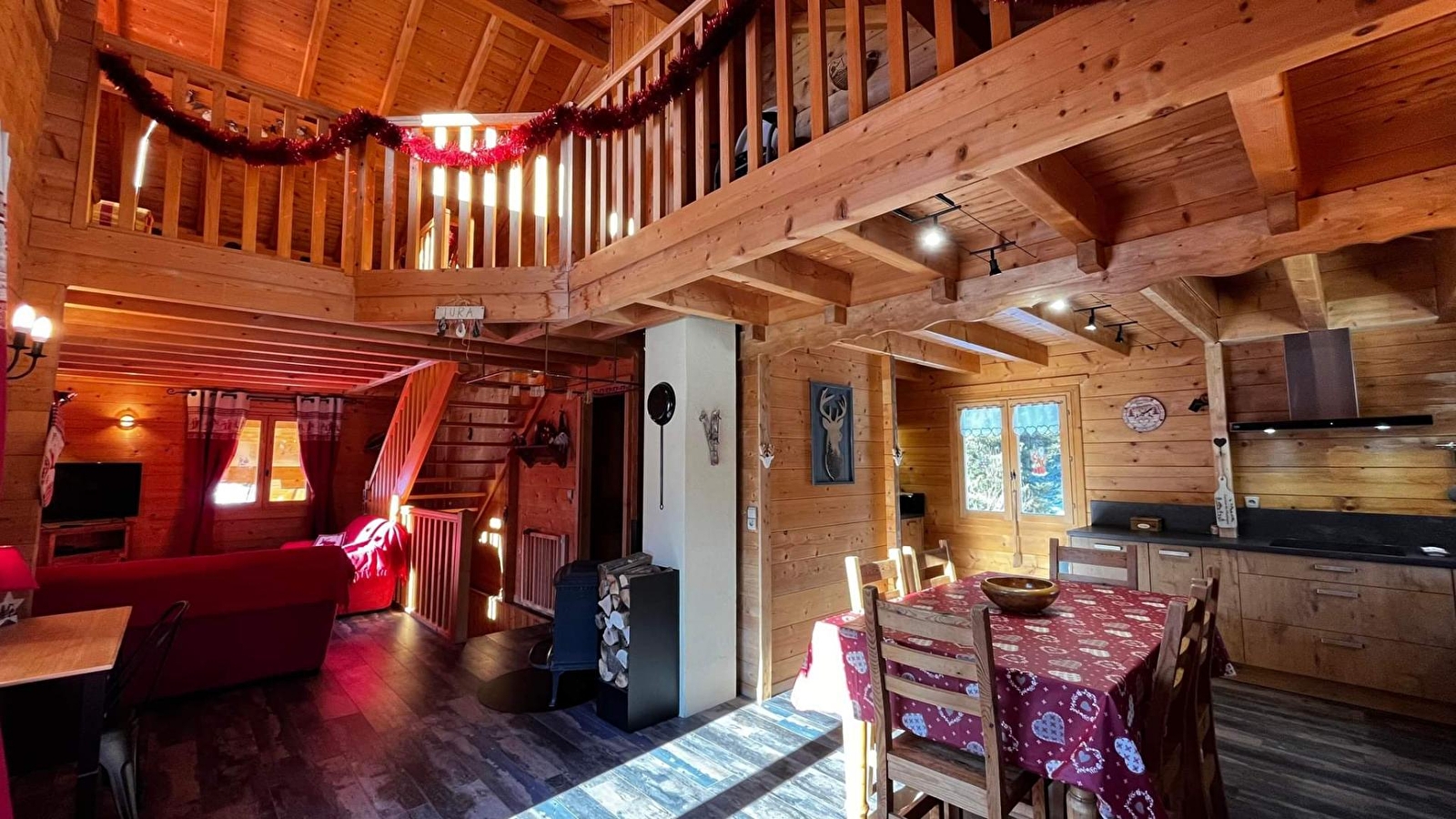 Detached chalet, entrance on ground floor, first floor: living room, wood burner, DVD player, fitted kitchen with 1 senseo and filter coffee maker, freezer, shower room, separate wc, bedroom 1: master suite 1 double bed with en-suite shower room and wc, bedroom 2: 1 double bed. 2nd floor: mezzanine with lounge area and sofa, bedroom 3: 2 single beds, electric heating, garden furniture, barbecue, balcony-terrace, adjoining land, car port. All utilities included. Possibility of 2 additional single beds in 3rd bedroom. Baby equipment. Beds are equipped with duvets and pillows: please bring suitable covers. Supplement of €11/person/night for more than 6 people. Private car park on site.