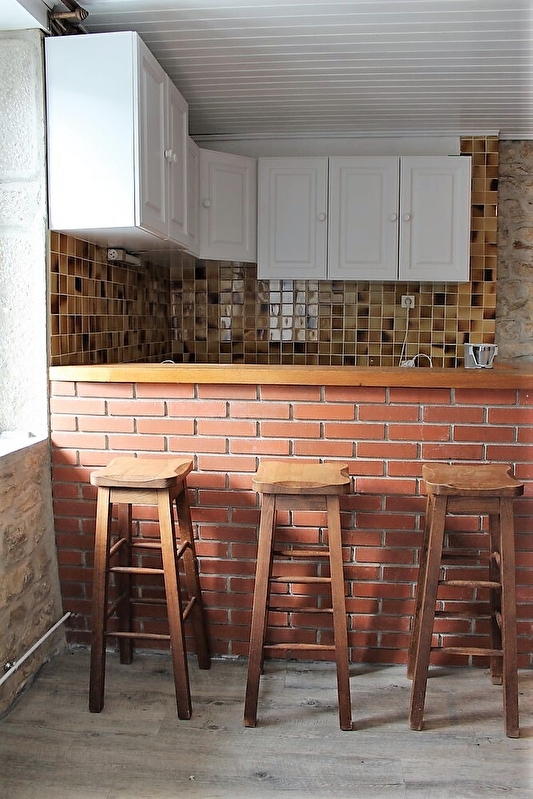 Ground floor in semi-detached house. Kitchen, microwave, living room, TV, shower room, 2 toilets, 1 bedroom on the ground floor (1 x 2 bdrms), 2 bedrooms on the first floor (1 x 2 bdrms and 3 x 1 bdrms), washing machine, fireplace, enclosed garden, garden furniture, garage, terrace.