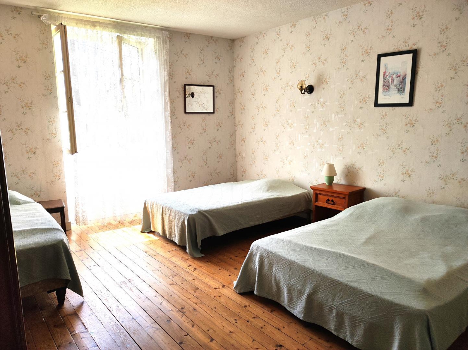 Detached house in the heart of a hilltop village, 4 km from Poligny. Ground floor: kitchen with microwave (TV), freezer, living room (TV), shower room, separate WC, first floor: bedroom 1: 1 double bed, 1 cot, bedroom 2: 2 single beds (including 1 120 cm bed) + 1 double bed, central heating, courtyard, enclosed garden (7 ares) with fruit trees, garden furniture, barbecue, garage. All utilities included. Weekend rental possible (price: €160): please enquire. Wifi access.