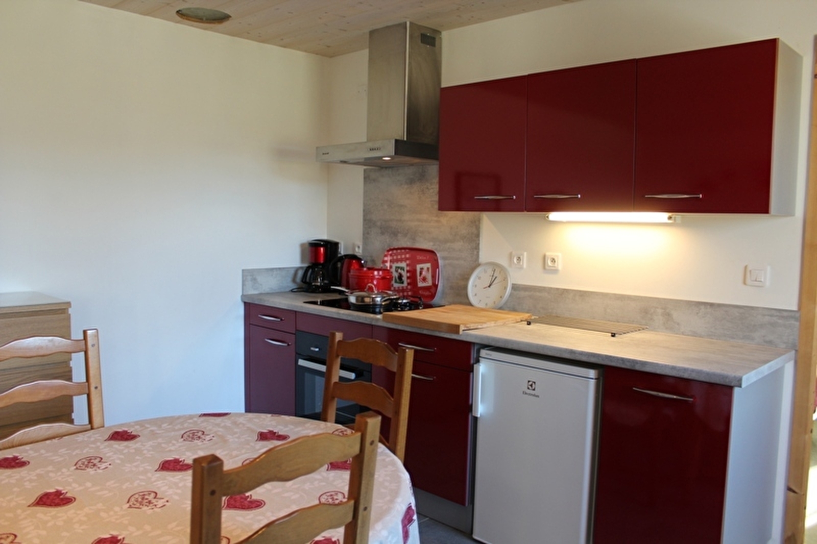 Gîte for 2 people in a renovated former tuyé. It comprises a living room with kitchen, dining room and relaxation area (sofa bed), 1 bedroom with 1 x 160x200 bed, shower room with shower, 1 separate toilet. Adjoining unfenced garden with terrace, garden furniture and barbecue.