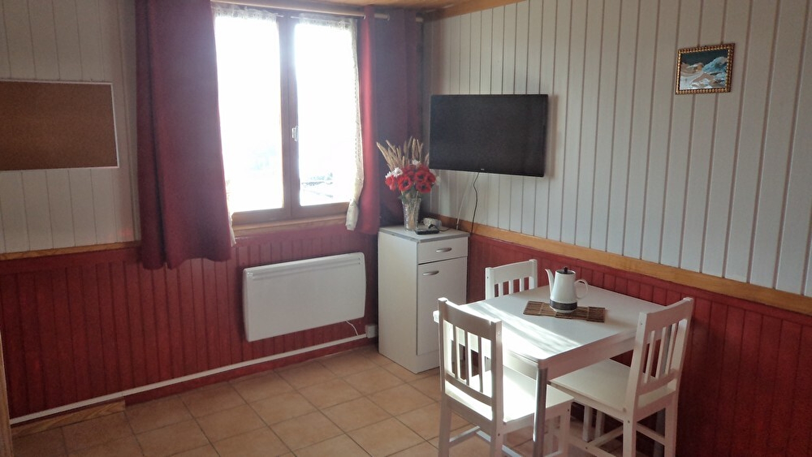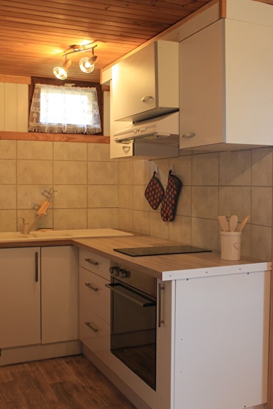 In the heart of the Haut Jura, a stone's throw from the Marais ski resort, small flat on the ground floor of the owners' house, which also has other accommodation. Separate entrance. Entrance hall, living room with small kitchen area and sitting area with sofa and flat-screen TV. Bedroom with 1 x 140cm bed (and a cot) and bathroom with shower and wc. Adjoining unfenced garden with garden furniture and barbecue for the summer months. Carport and petanque area available. Bed linen not provided.