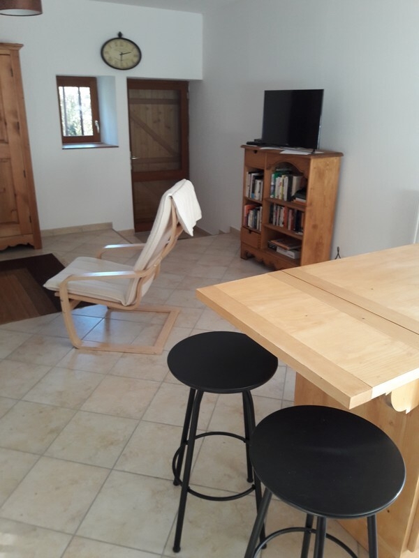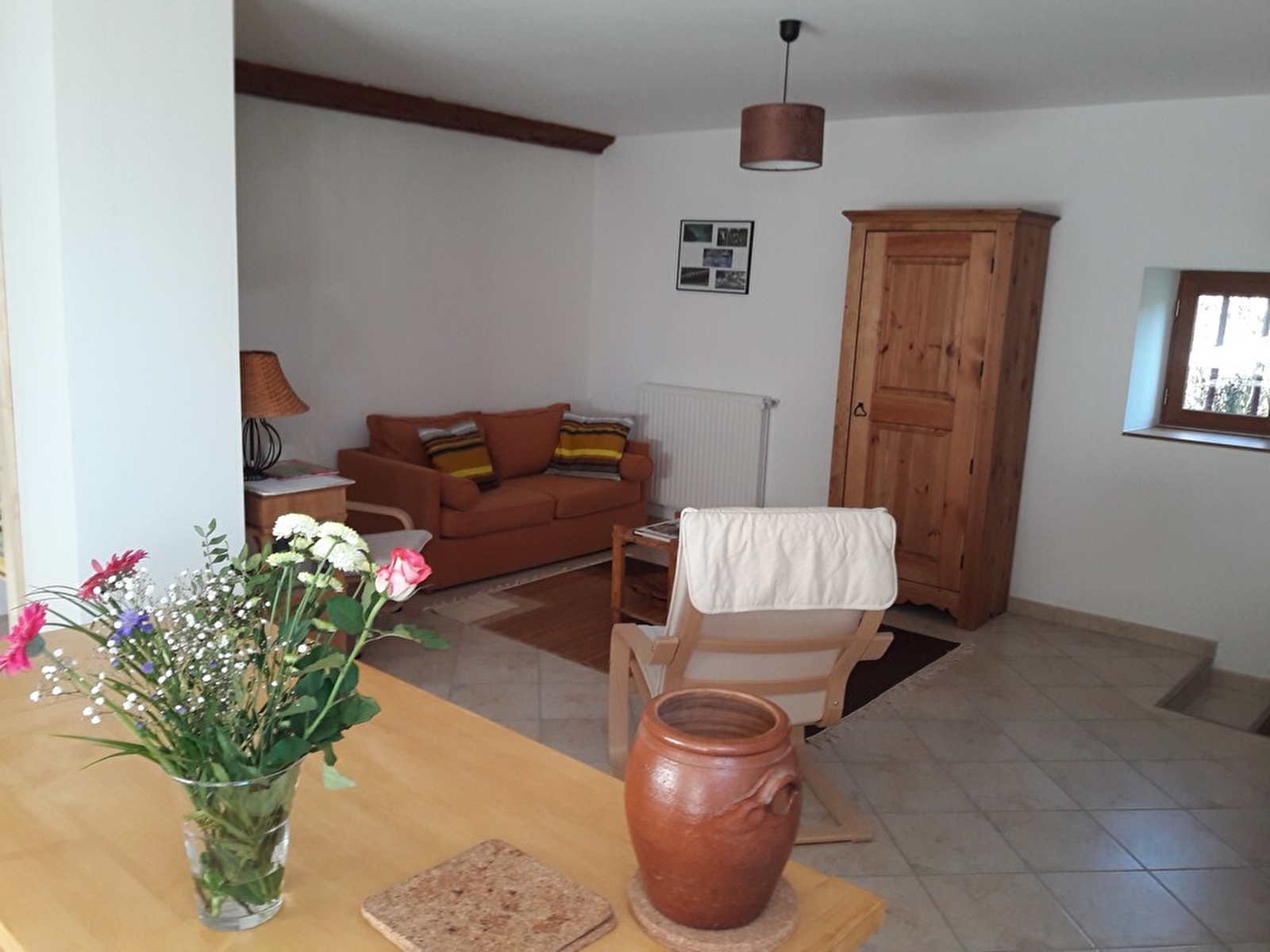 Ideally situated between lakes and mountains, not far from the various tourist sites to visit, renovated accommodation in part of the owner's house. Ground floor: living room with sitting area and fitted kitchen, large bathroom with large walk-in shower and bath, separate WC. Upstairs, a bedroom with 1 double bed (140x190cm) and a 2nd bedroom with 2 single beds. One has a dressing room, the other a sofa bed if you need an extra bed. Available: unheated veranda accessible from the outside, which can be used as a games room. Adjoining unfenced garden with garden furniture and barbecue.
