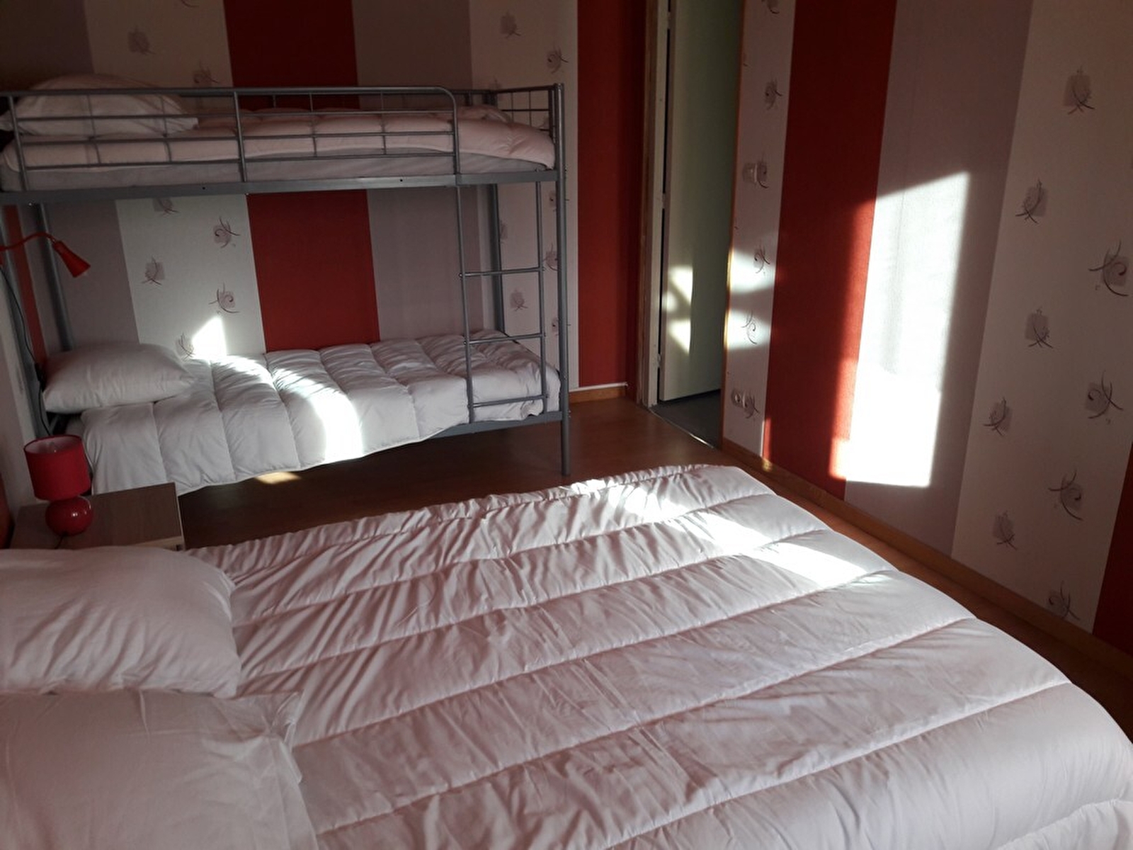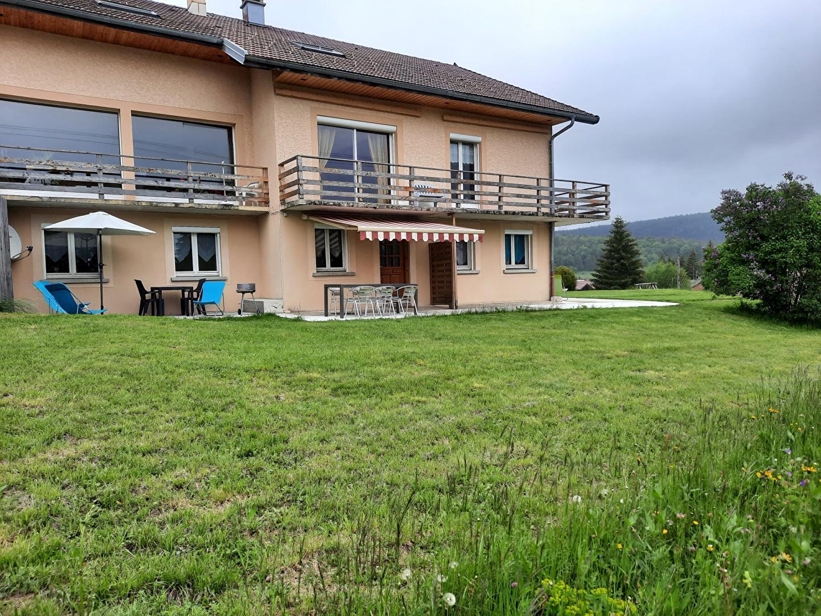 Accommodation for 4 adults and 2 children in the heart of the Haut-Jura, a stone's throw from the Marais ski resort, on the ground floor of the owners' house (in which there is also another gîte for 2 people). The living area comprises a fully-equipped kitchen and a sitting area with sofa and flat-screen TV. Two bedrooms, one with a double bed (140cm) and the other with a double bed (140cm) and 2 bunk beds (90cm), and shower room with large shower. Separate WC. Terrace with garden furniture and barbecue and adjoining unfenced garden. Carport and petanque area available. Bed linen not provided.