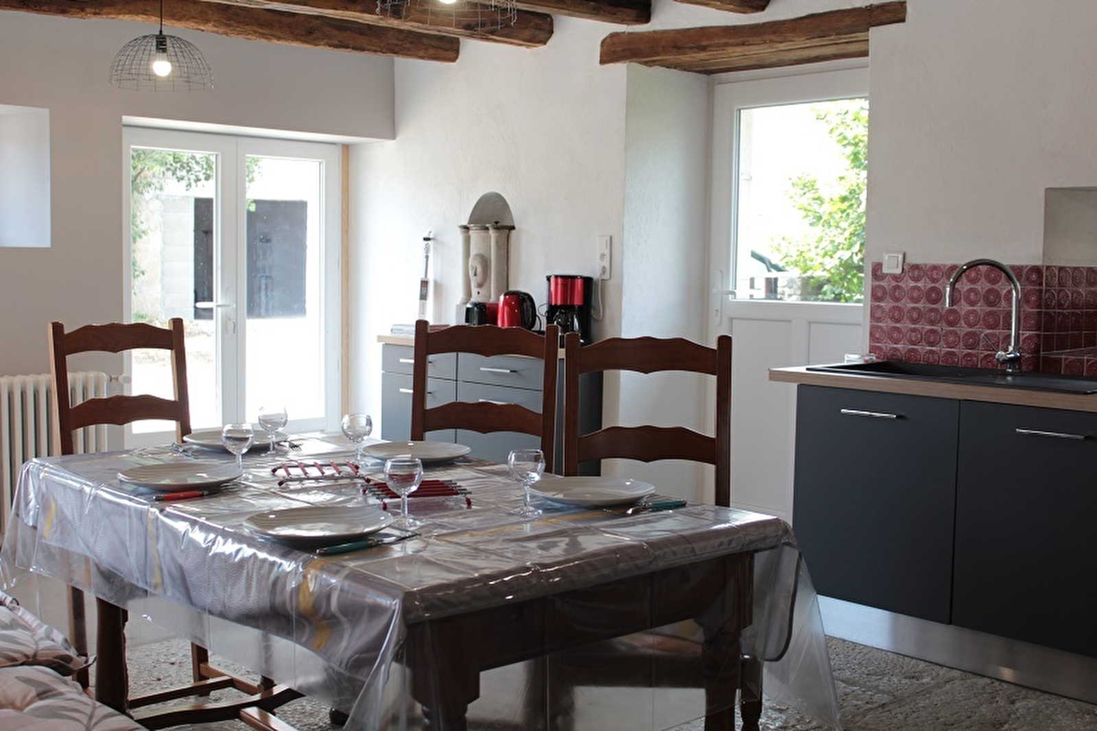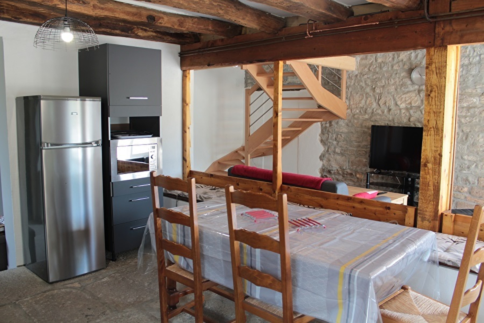 Just a few minutes from Lac de Chalain and the Pergola beach, this charming stone house has been completely renovated. Ground floor: entrance hall, living room with fully-equipped kitchen area (microwave, oven, induction hob) and wood-burning stove with direct access to the garden, lounge area with flat-screen TV and DVD player, shower room and separate toilet. Upstairs, a mezzanine area with sofa bed and TV and 3 bedrooms, 2 with 2 single beds and 1 with a 160cm bed, separate WC and shower room with large walk-in shower. Outside, the fully enclosed garden features a lounge, garden furniture, a plancha grill and sun loungers for spending pleasant moments with family and friends. In addition to the thick walls of the building, which keep the interior cool, a fan is also installed in the living room. Possibility of accommodating 1 or 2 extra people on request from the owners (sofa bed on the mezzanine): +50 euros per person Ideal base for discovering the cultural and natural heritage of the Jura: Lac de Chalain, Hérisson waterfall, Haut-Jura Regional Nature Park, the large saltworks at Salins les Bains, a UNESCO World Heritage site, and the towns of Arbois and Poligny, renowned for their gastronomic treasures: wine and Comté cheese. Compulsory cleaning deposit: €90