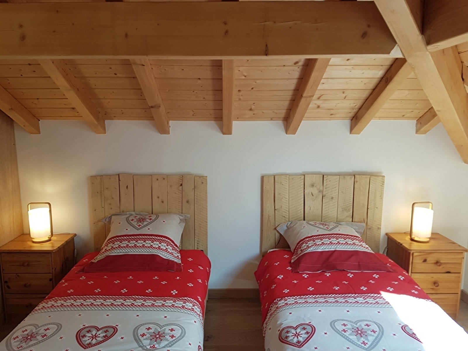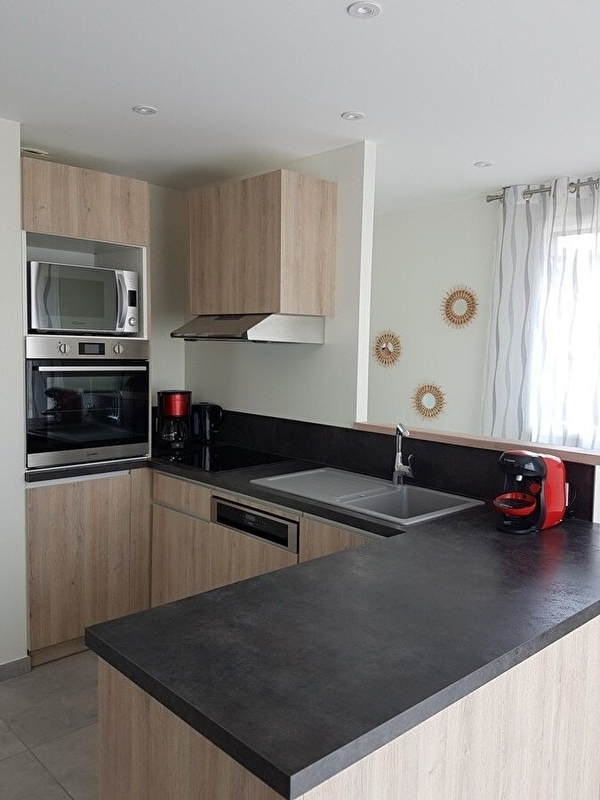 This new timber-frame house, situated in a quiet cul-de-sac, comprises on the ground floor a living room with fully-equipped fitted kitchen, a lounge with TV, a shower room with walk-in shower, a utility room and a separate toilet. Upstairs, there are 3 bedrooms, 2 with double beds (140cm), one with 2 single beds and a dressing area. Outside, there is a terrace with garden furniture, barbecue and deckchairs. For your convenience, beds will be made up on arrival. A room is available for storing equipment (skis, bikes, etc.) Note: low-temperature underfloor heating. A sauna is available, please contact the owners directly.