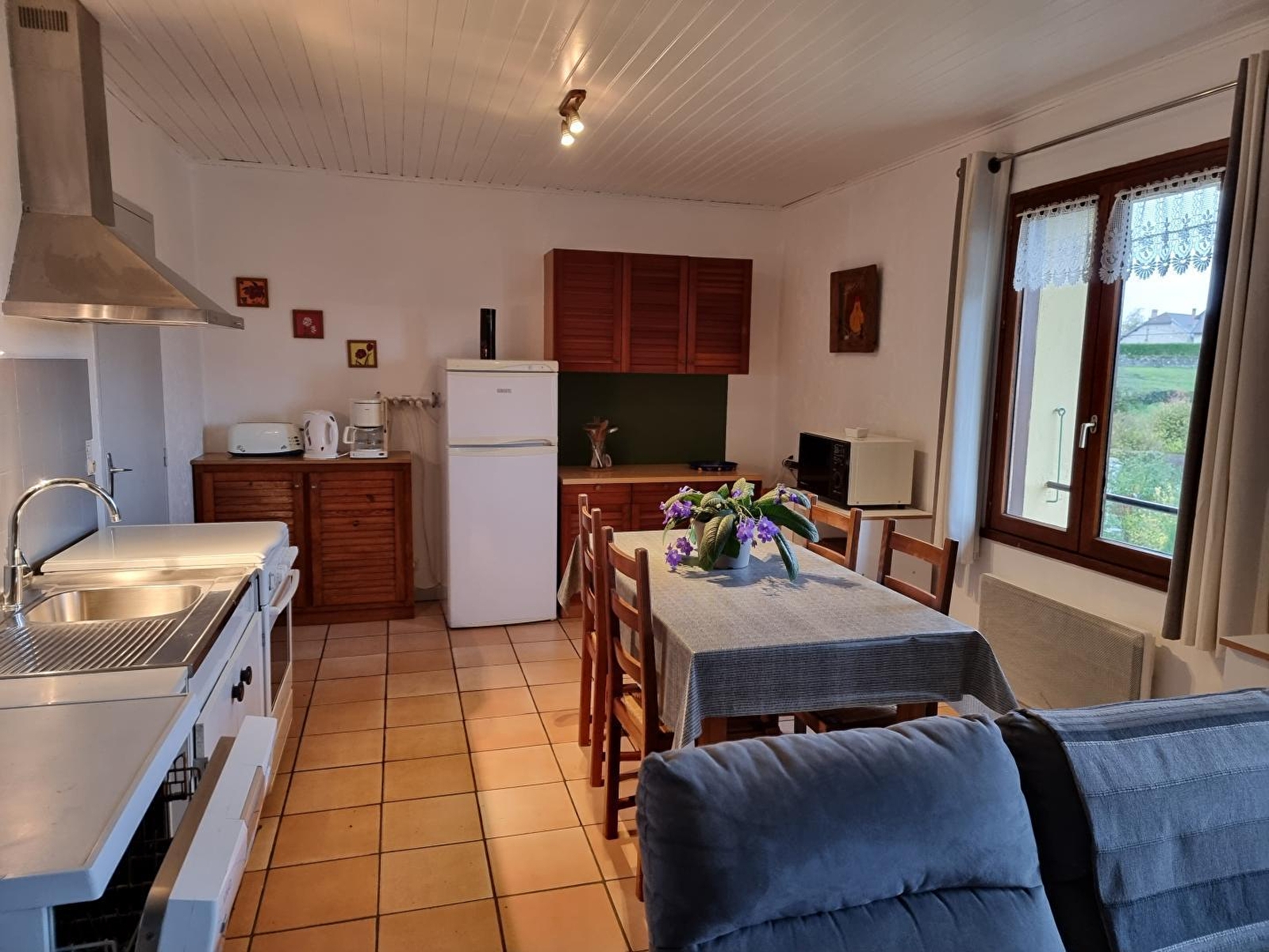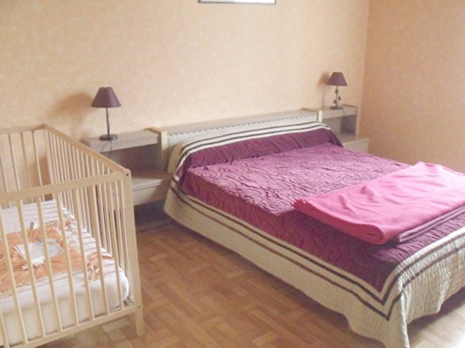 Accommodation on the first floor of a terraced house in which there is another cottage. Kitchen/living room with wood-burning stove, sofa bed, bedroom 1: 1 double bed, bedroom 2: 1 double bed, 1 cot, bedroom 3: 2 single beds, linen hire, shower room. Open communal courtyard, garden furniture, communal barbecue. Electric heating. Home comforts: pressure cooker, vacuum cleaner, oven hood, toaster, iron and ironing board, electric coffee maker, freezer. Available: raclette and fondue sets, highchair, 1 camp bed. Sheets: 6€/pair, optional cleaning: 30€. Wood for sale.