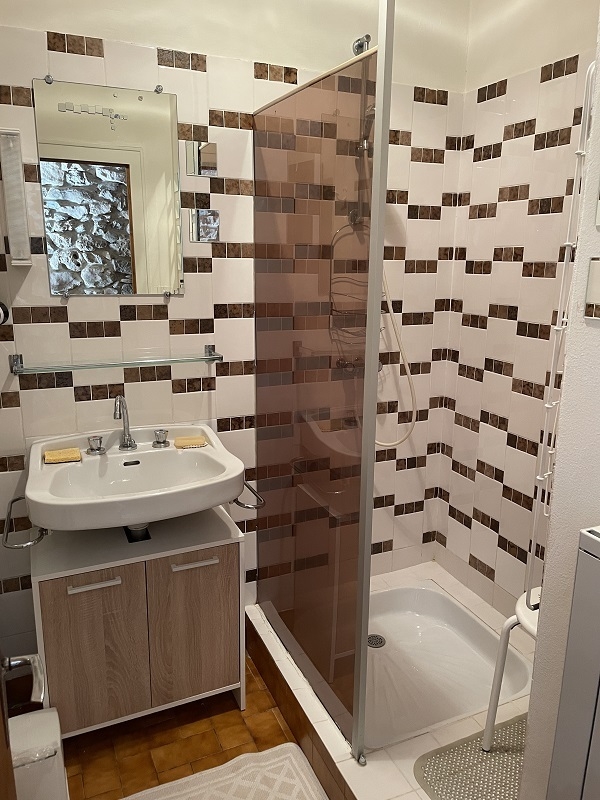 Bedroom 1 : 1 double bed, 1 single bed, bathroom, shared laundry room.
