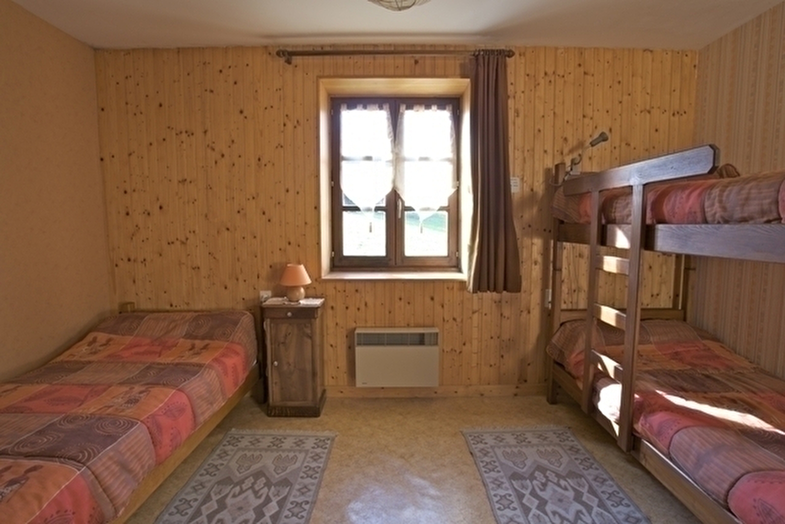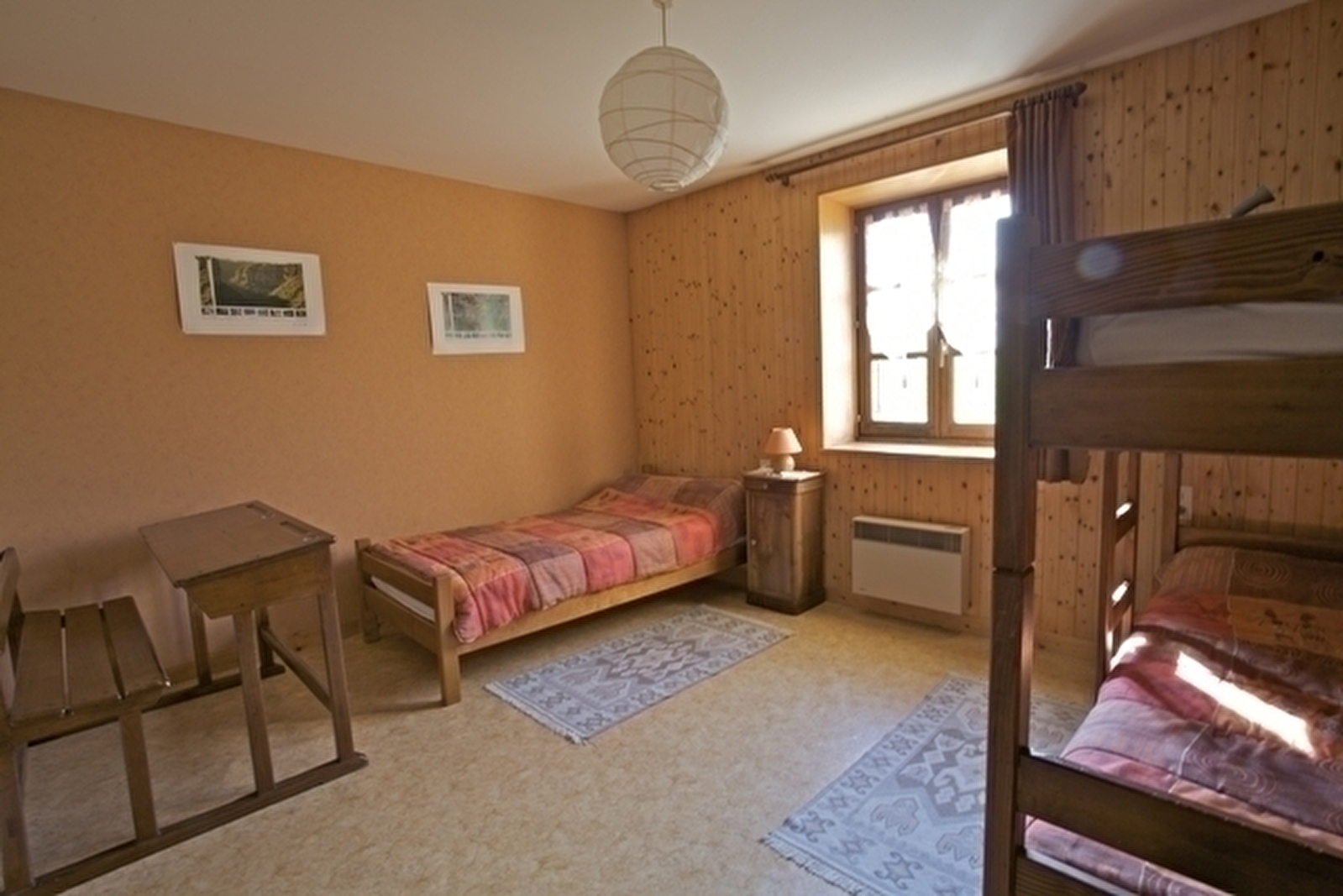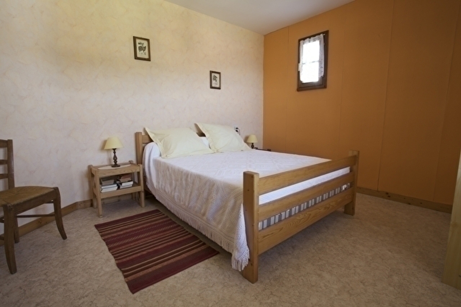 Adjoining the owners' house with entrance on the ground floor. First floor: living room, kitchen/lounge area, bedroom 1: 1 double bed, bedroom 2: 1 double bed, bedroom 3: 2 single beds, shower room. Unenclosed communal courtyard and unfenced adjoining garden, garden furniture, barbecue. Electric heating. Utilities not included. Convenience: freezer. Available: cot, 1 extra single bed. Petanque pitch. Swimming pool, sauna and jacuzzi complex in the village (2km). Tourist tax: €0.60 per person per day.
