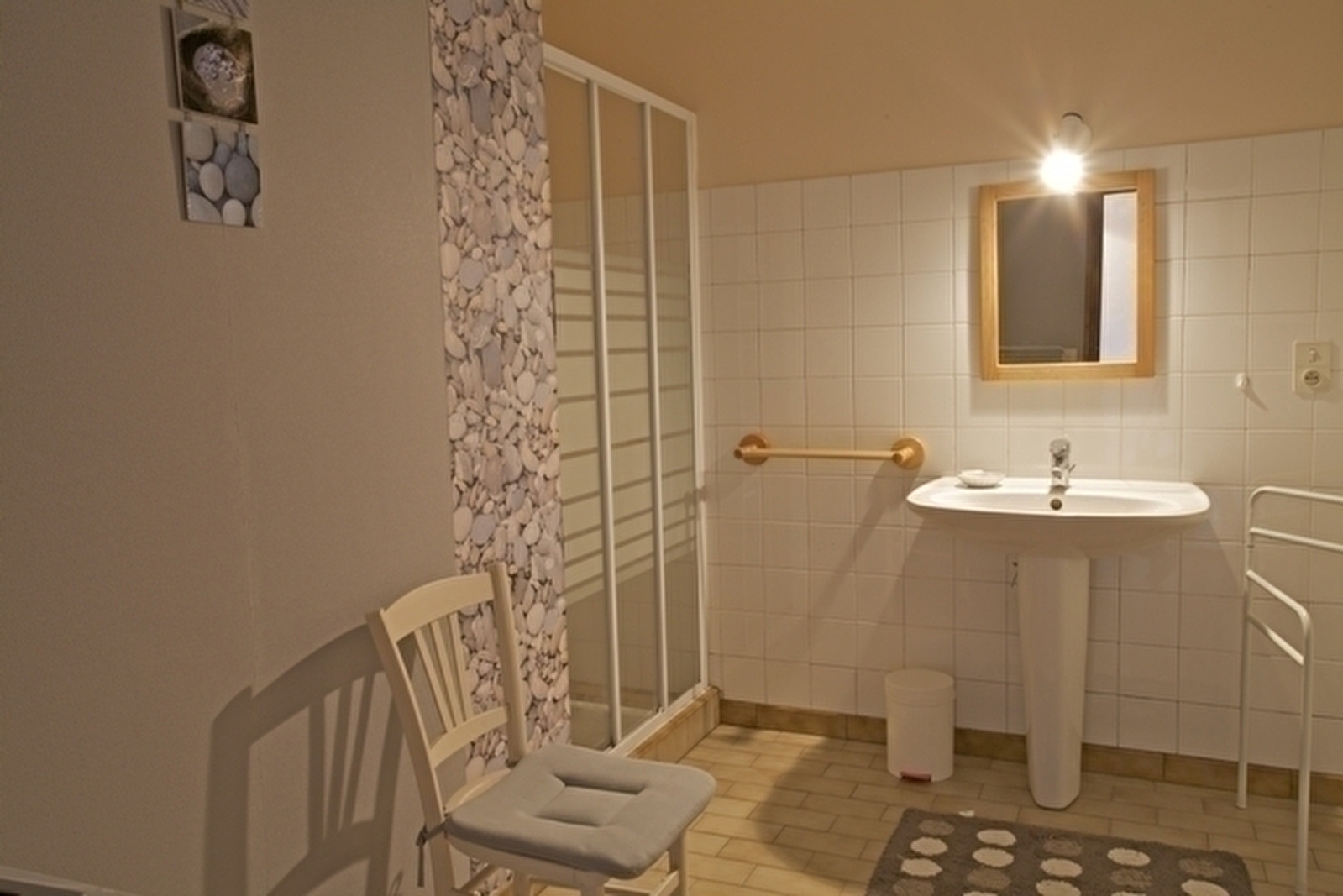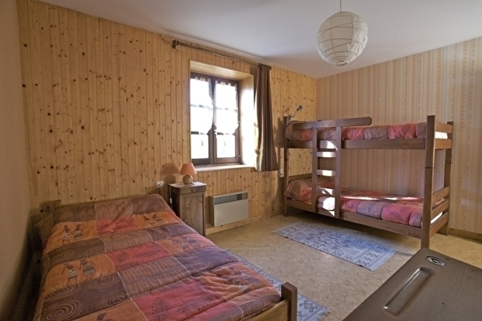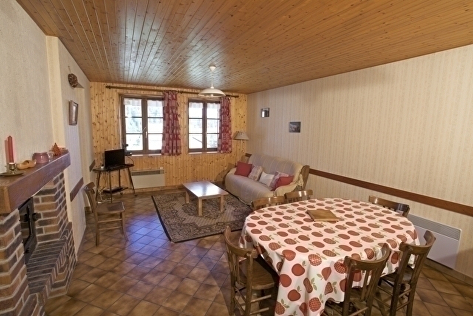 Adjoining the owners' house with entrance on the ground floor. First floor: living room, kitchen/lounge area, bedroom 1: 1 double bed, bedroom 2: 1 double bed, bedroom 3: 2 single beds, shower room. Unenclosed communal courtyard and unfenced adjoining garden, garden furniture, barbecue. Electric heating. Utilities not included. Convenience: freezer. Available: cot, 1 extra single bed. Petanque pitch. Swimming pool, sauna and jacuzzi complex in the village (2km). Tourist tax: €0.60 per person per day.