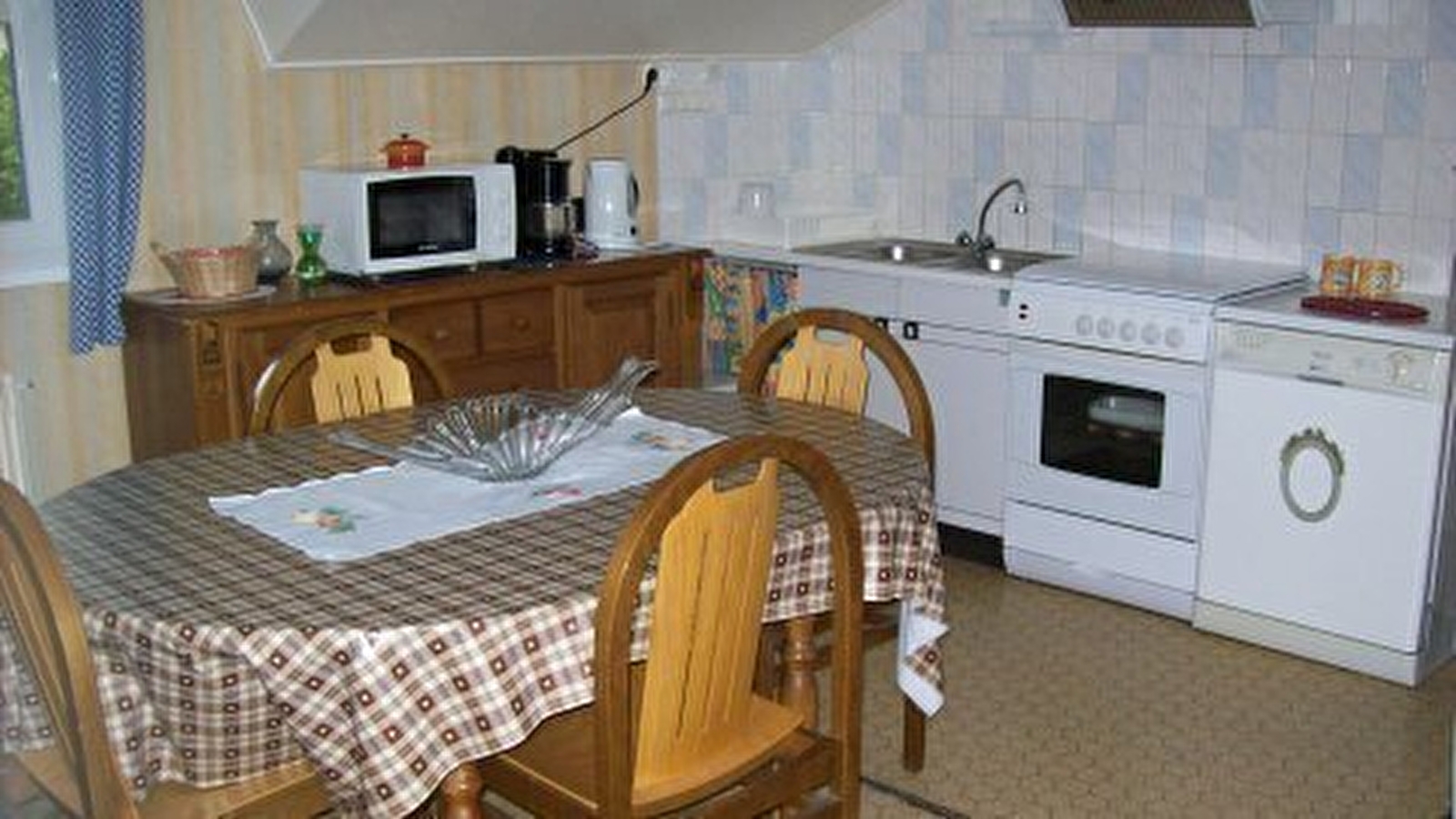 > an equipped kitchen,